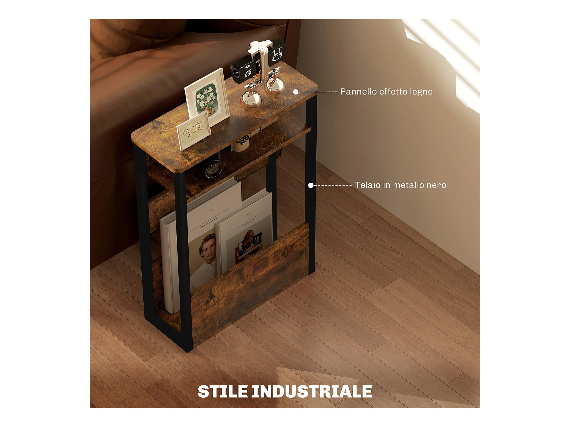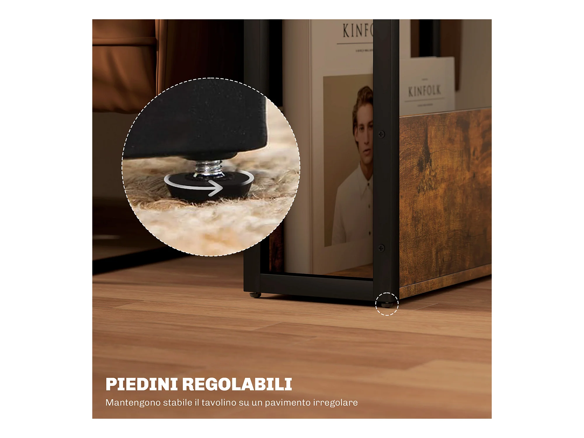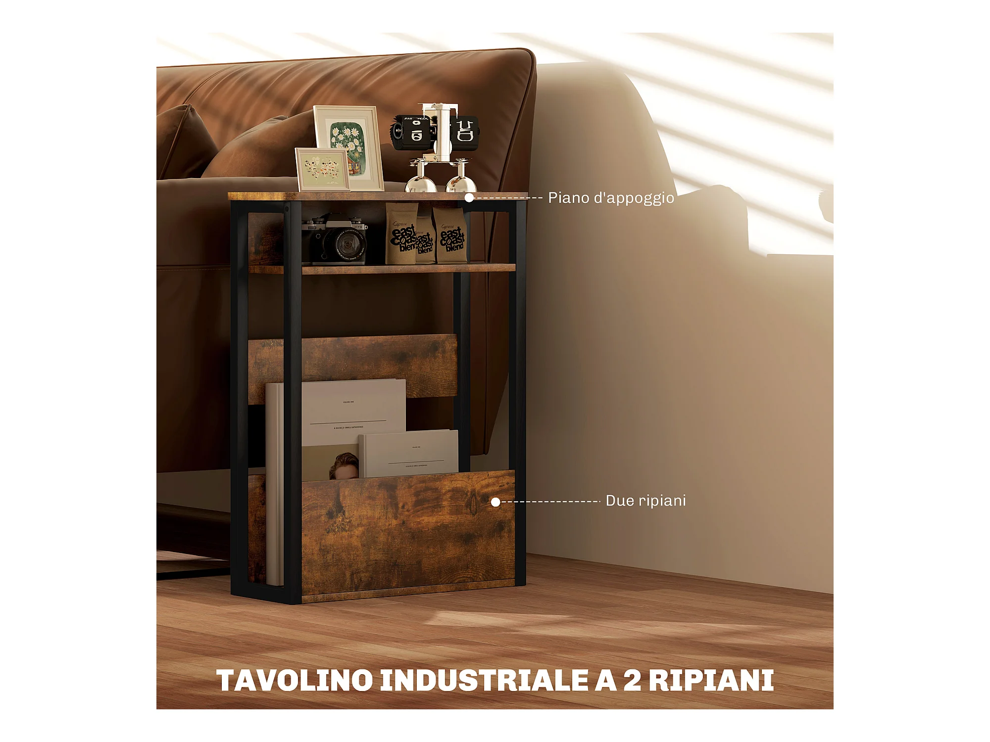 Tavolino da divano cassetto 2 ripiani stile industriale nero marrone