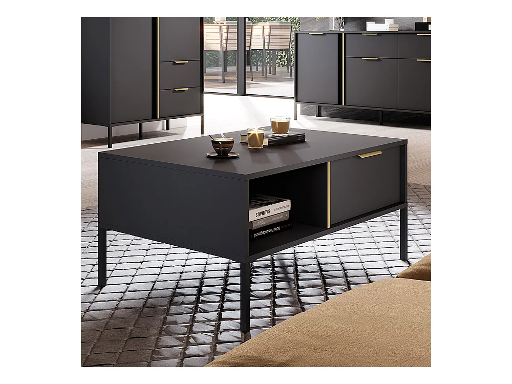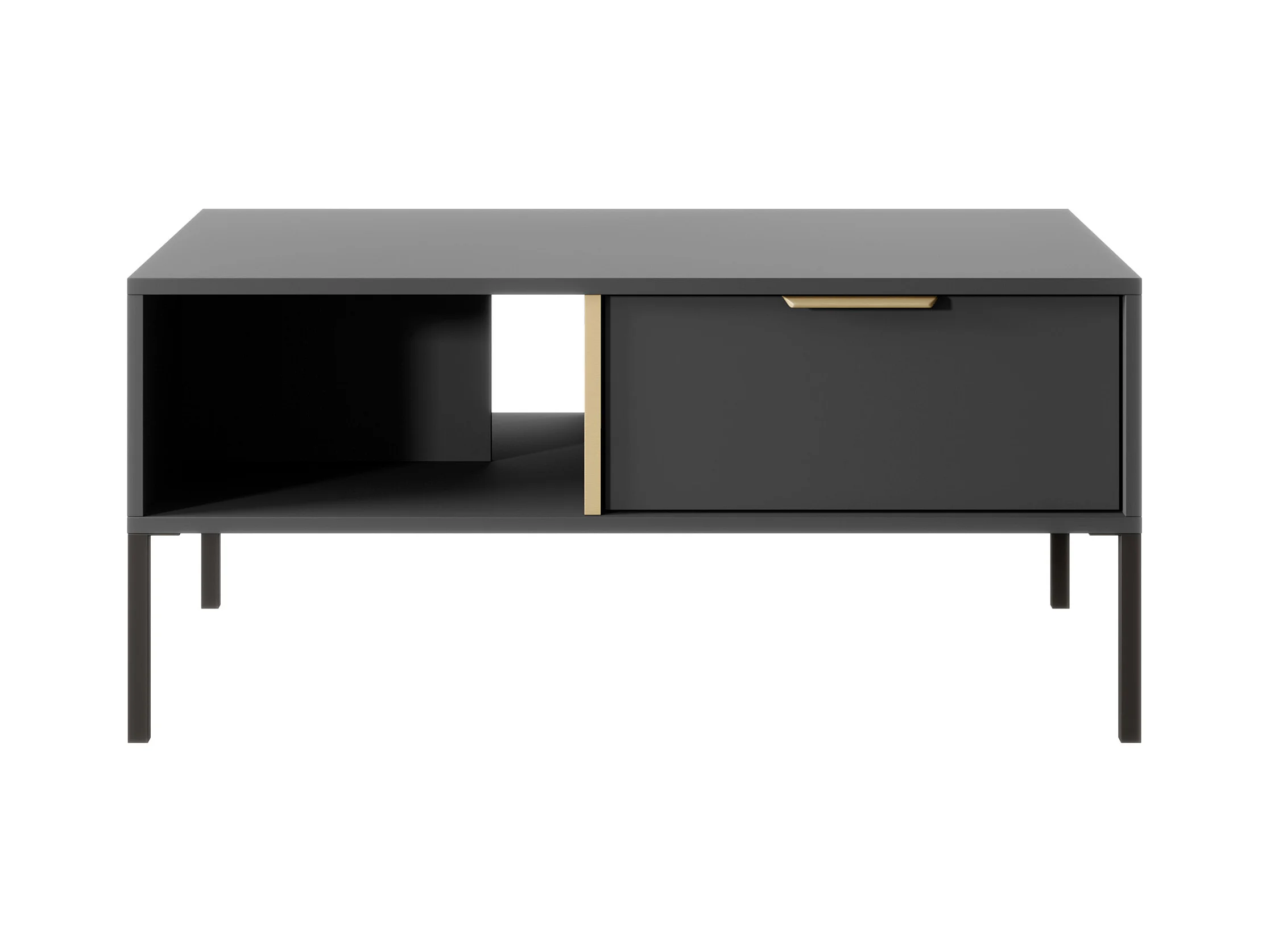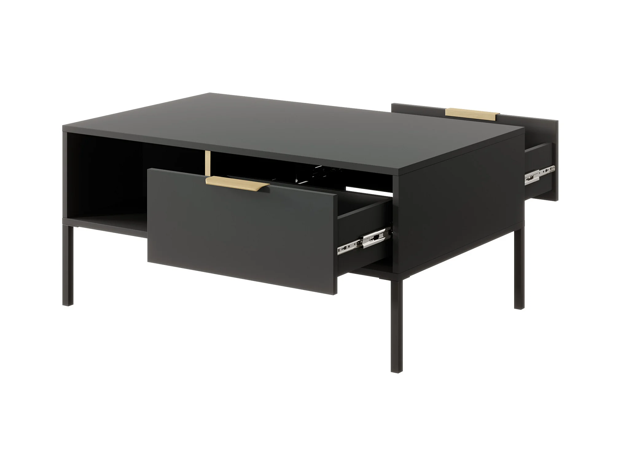 Tavolino da soggiorno moderno 97X44cm con due cassetti antracite con dettagli oro TLK5