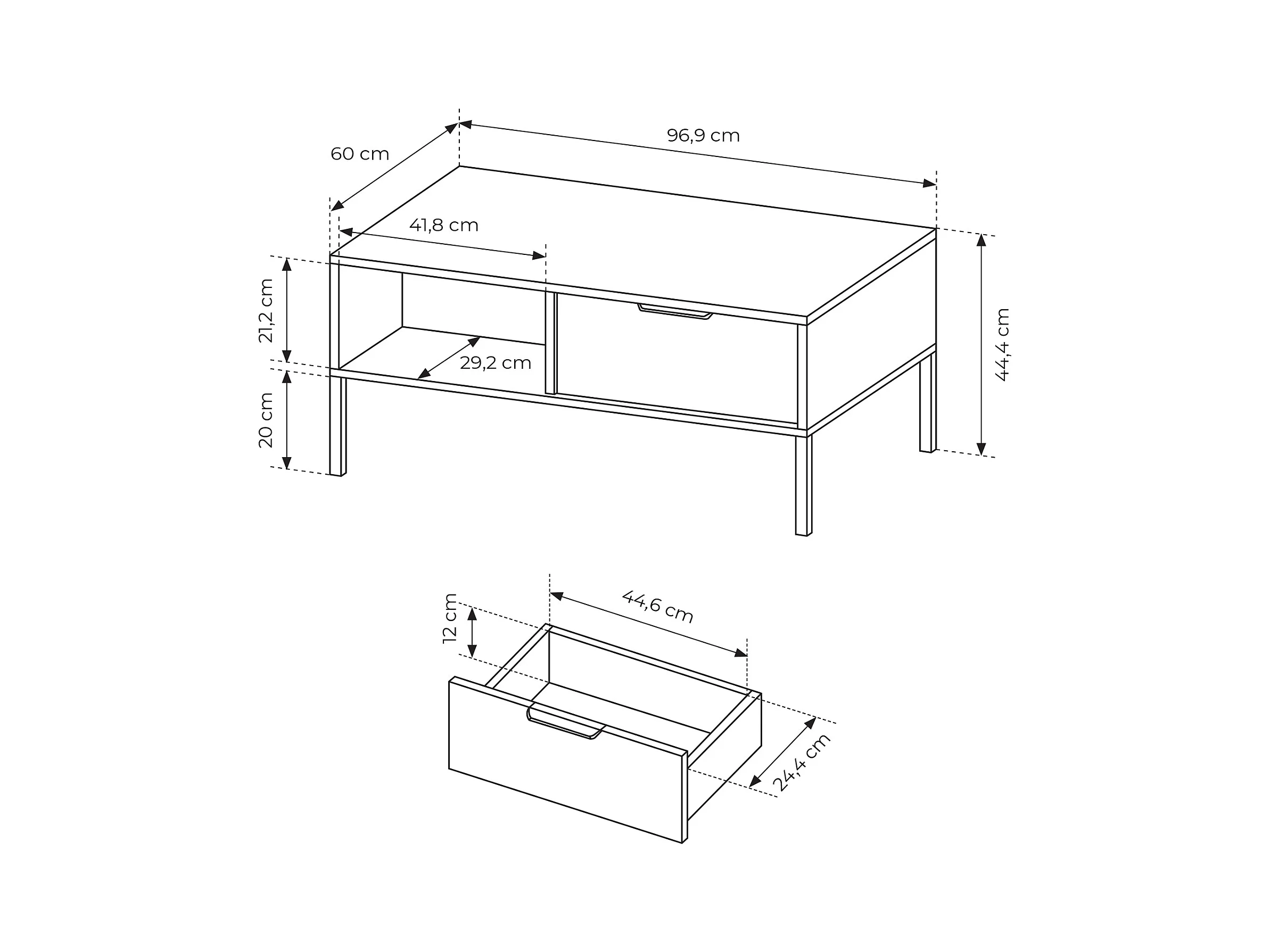Tavolino da salotto moderno 100x43cm rovere e nero TLK8