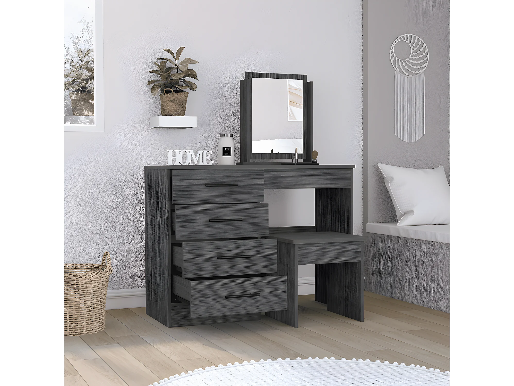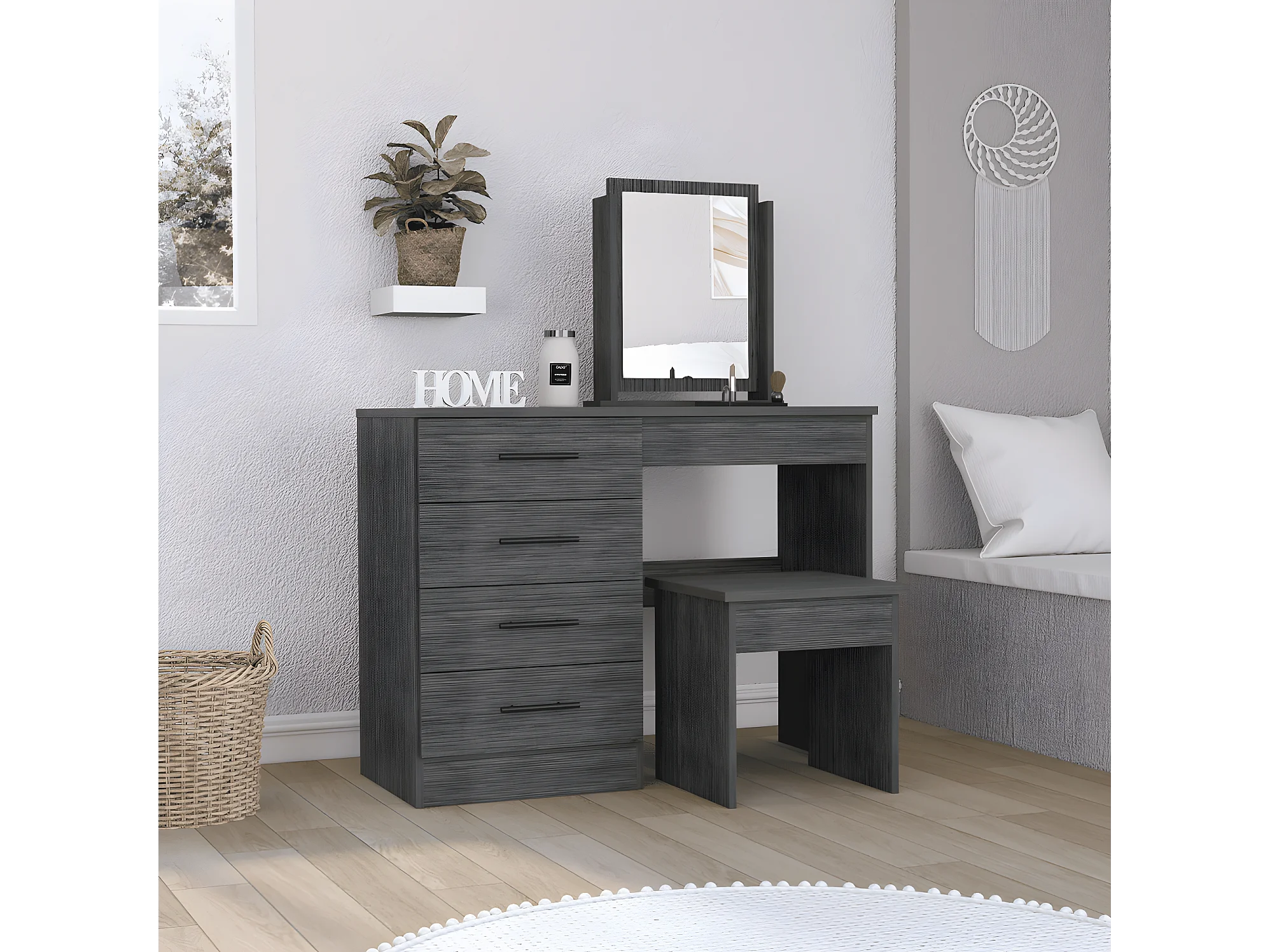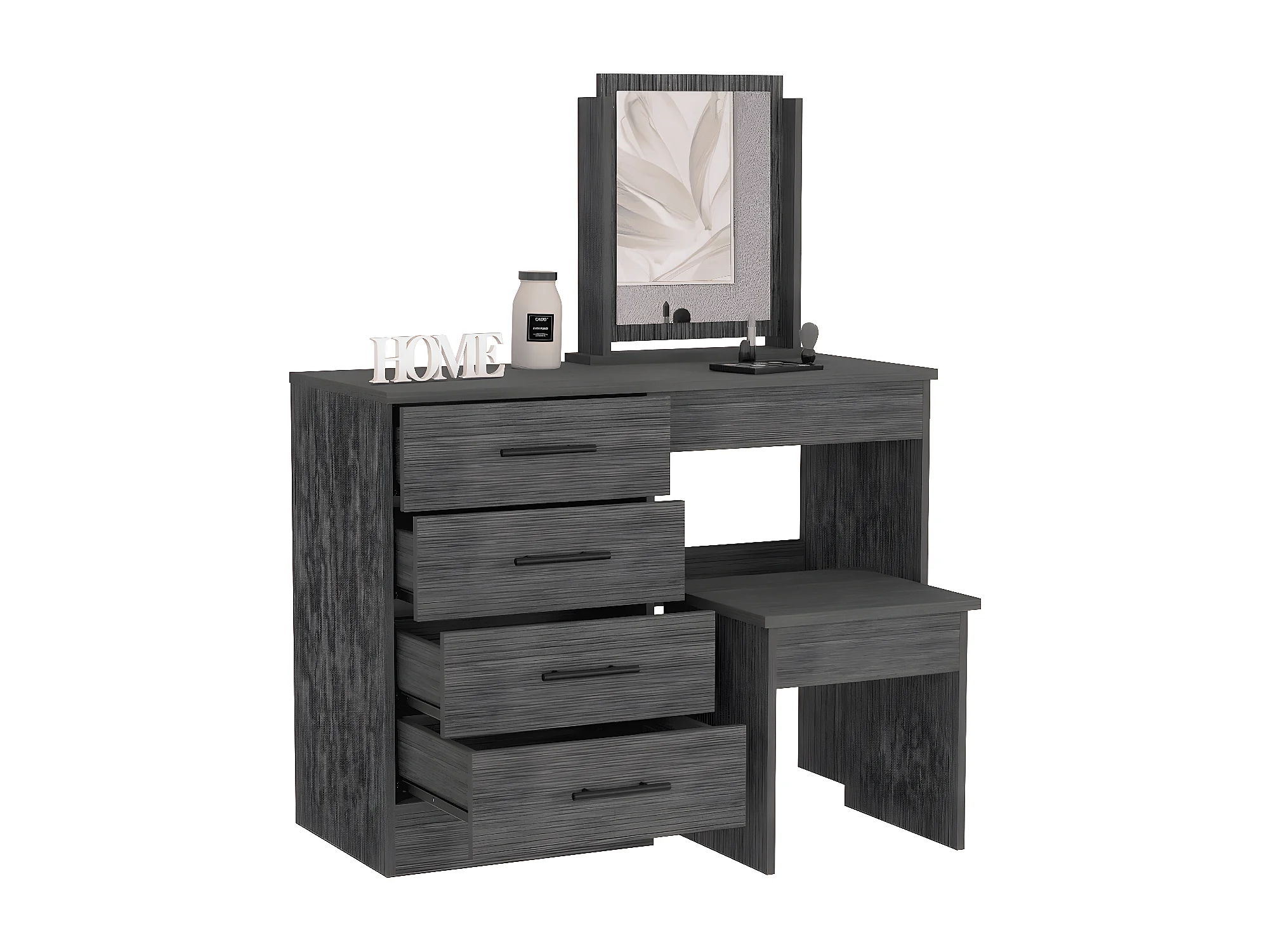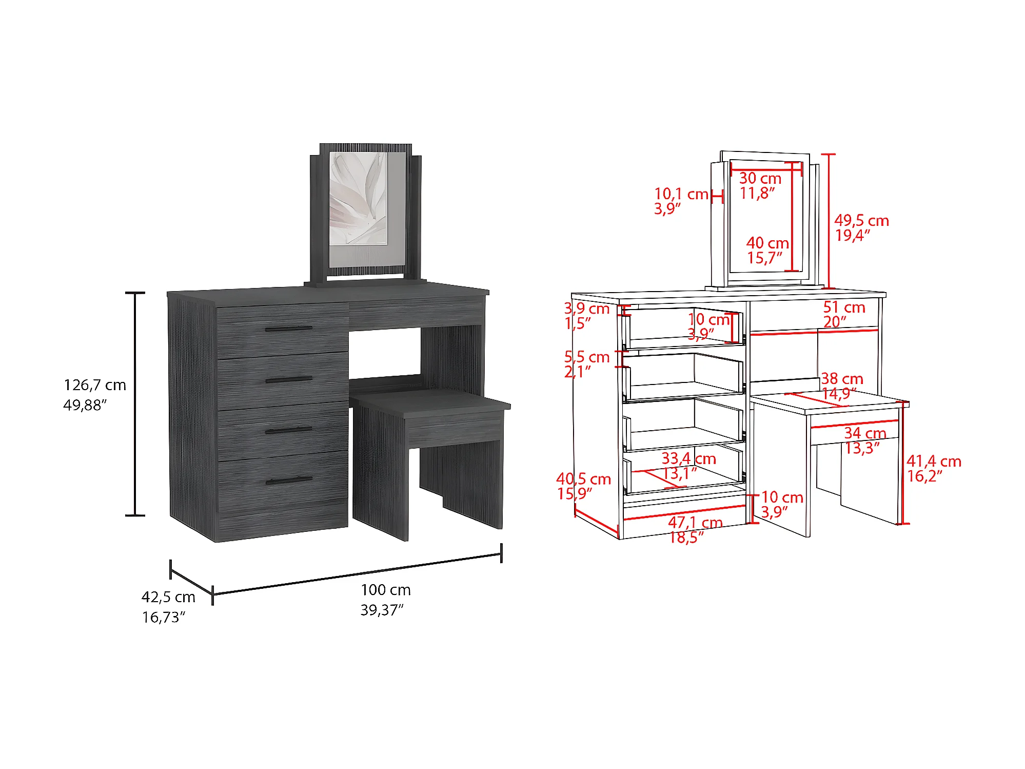 Tavolino da trucco Kaia con specchio e seduta inclusa 126,7 cm L X 100 cm L X 42,5 cm P Rovere grigio