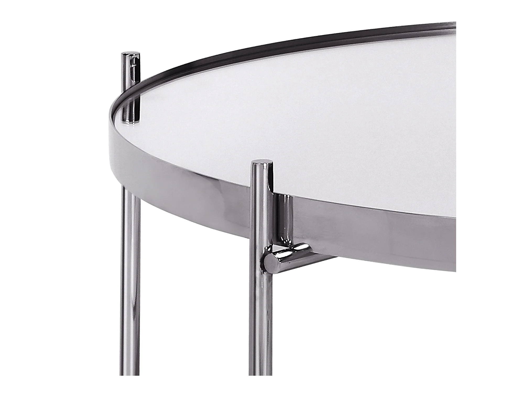 Tavolino di design con base in acciaio cromato e piano rotondo in vetro fumé da 80 cm Mostra