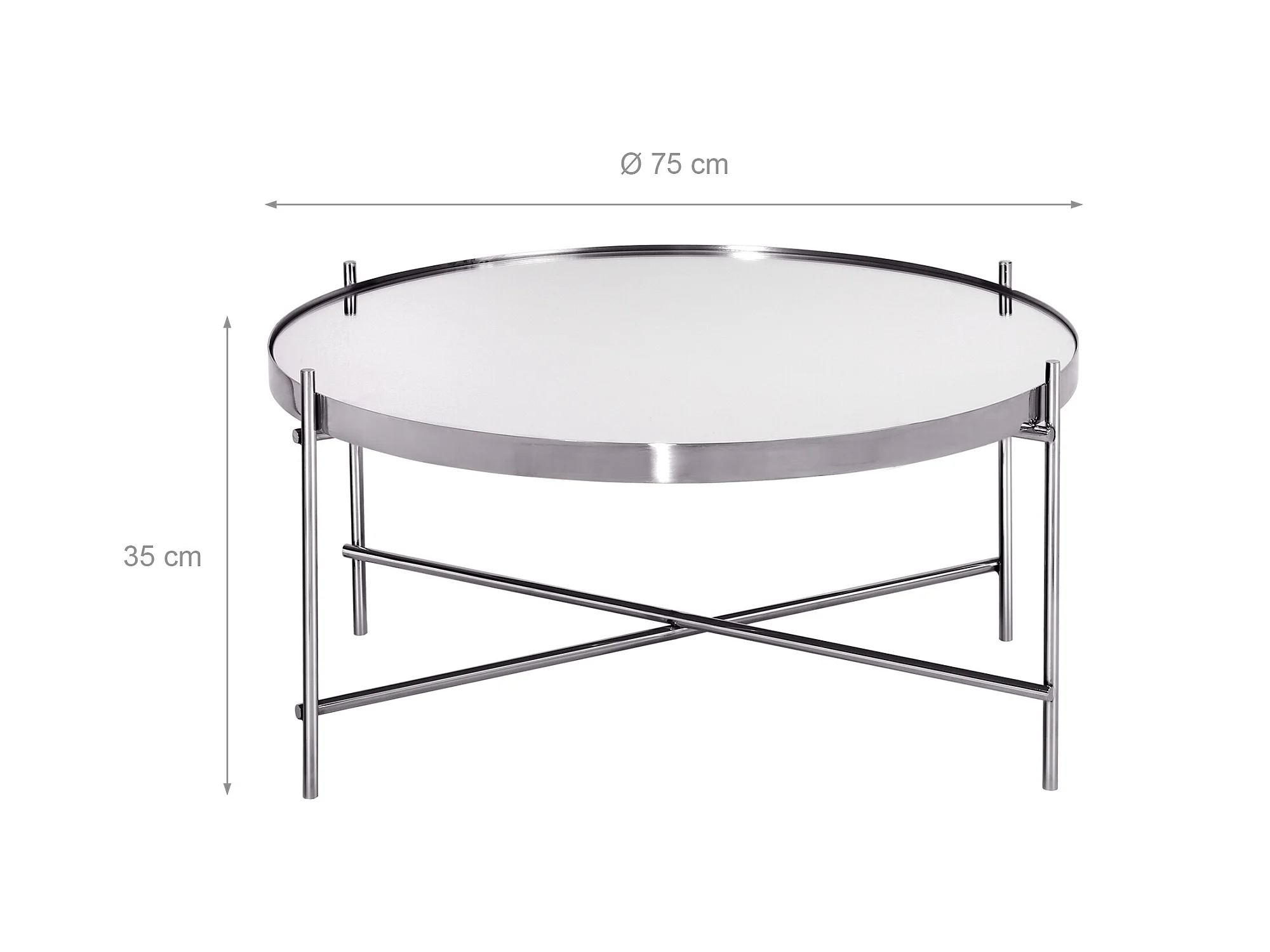 WOMO-DESIGN Tavolino basso da caffe Ø 75x35 cm cromato rotondo in metallo con piano in vetro, stile moderno, tavolo laterale per soggiorno e salotto