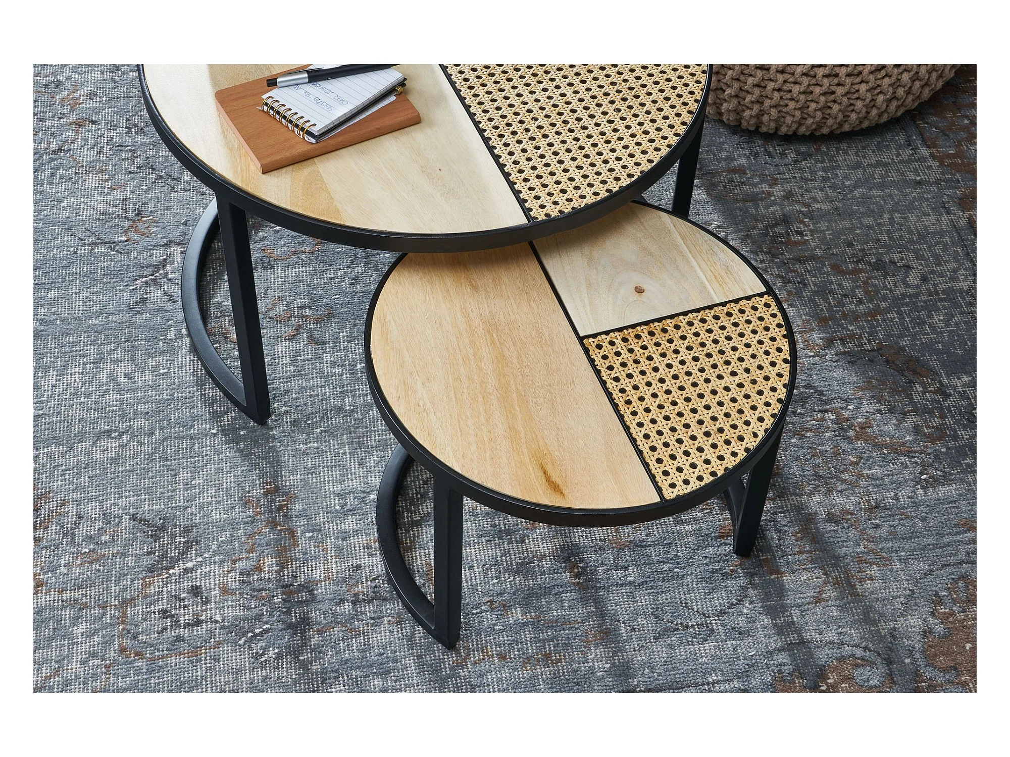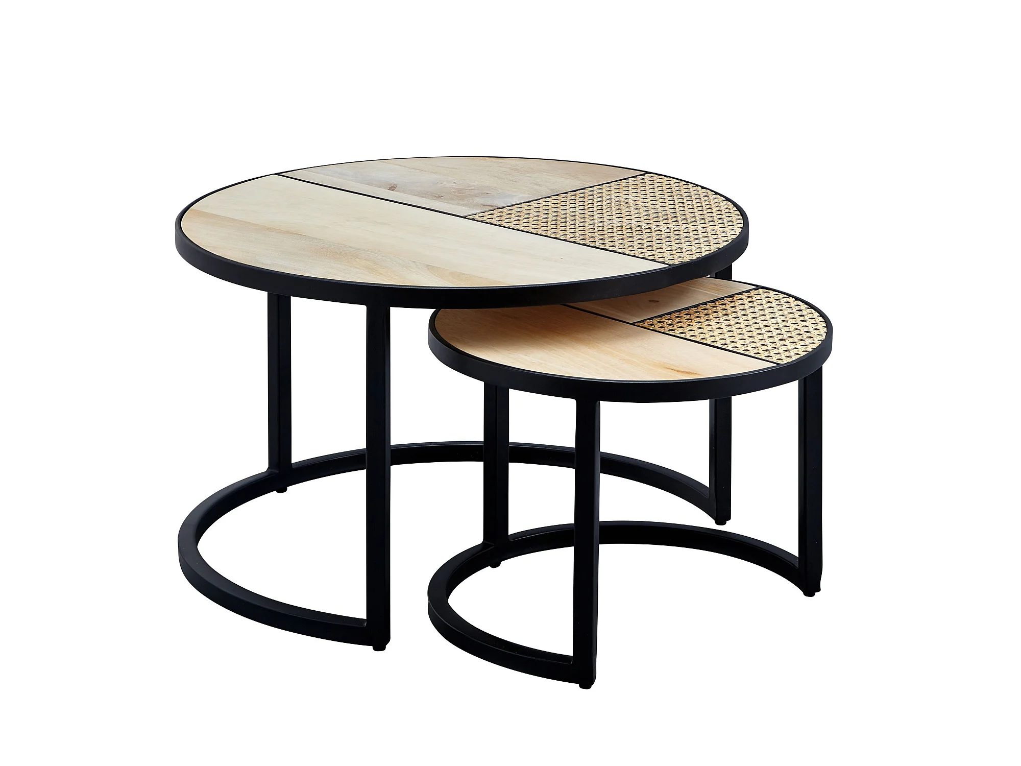 tavolino di design in legno massello tavolino da soggiorno in 2 parti tavolino rotondo