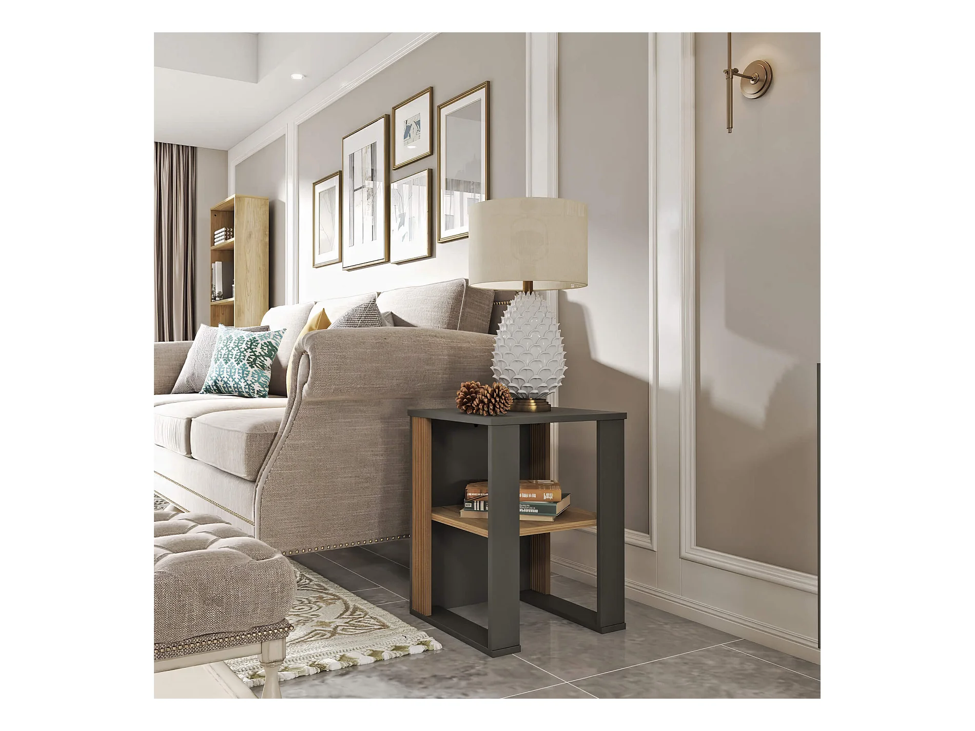 Tavolino Fianco Divano Neem 60x45x45 Truciolato Marrone Scuro Grigio Scuro Moderno