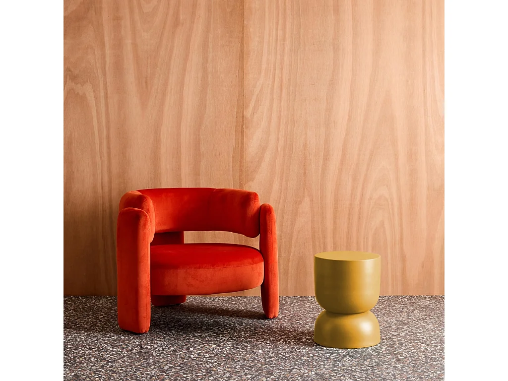 Tavolino, fine divano, comodino in metallo, mostarda