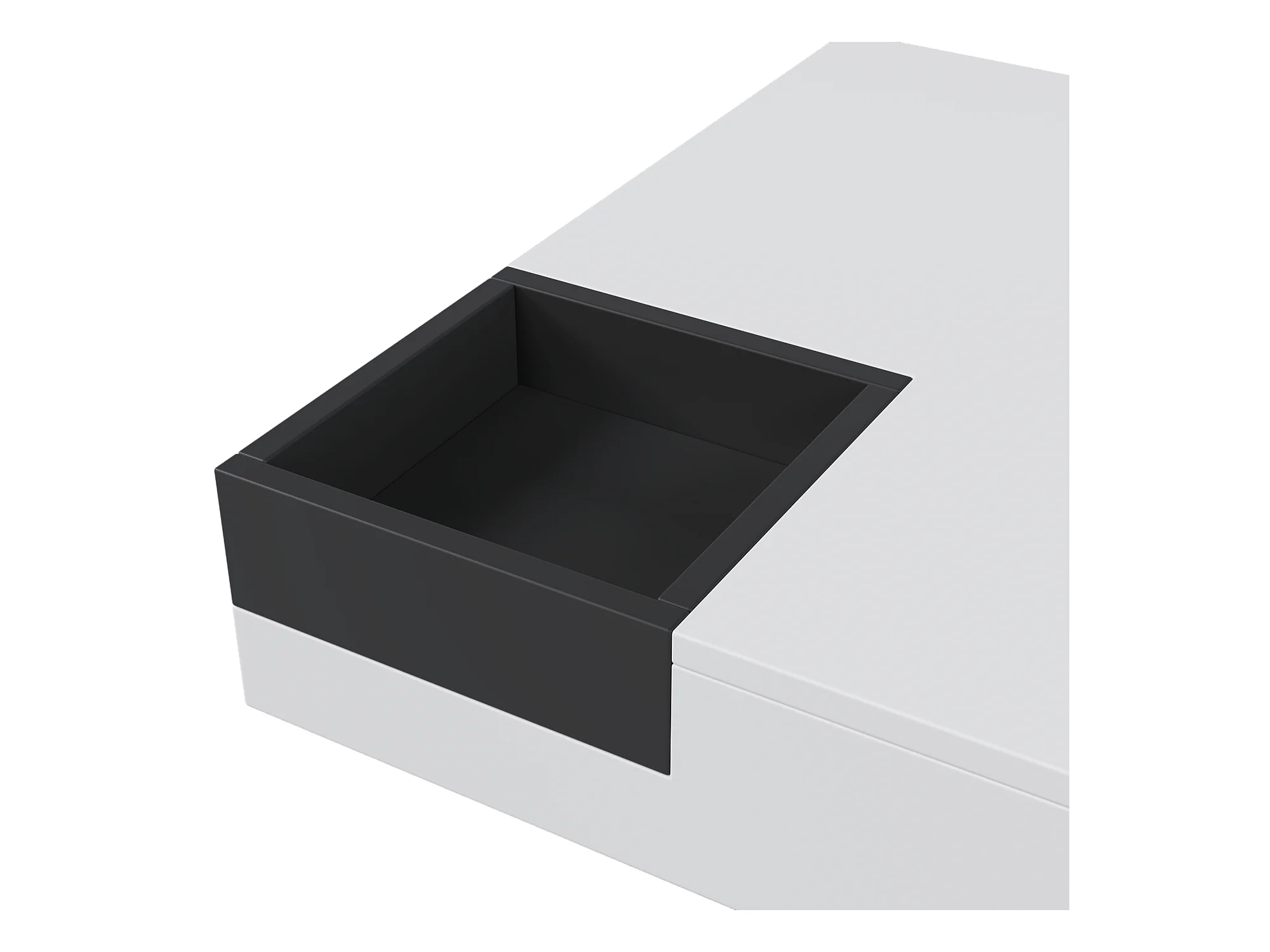 Tavolino fisso 72x72x30 cm lucido con LED e contenitore nero rimovibile - Bianco
