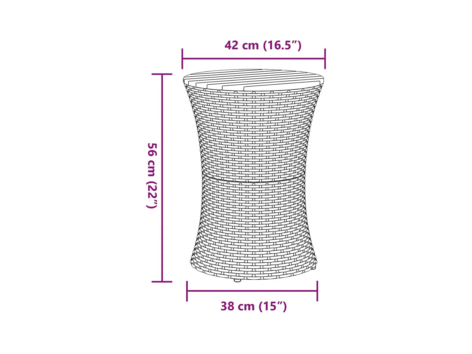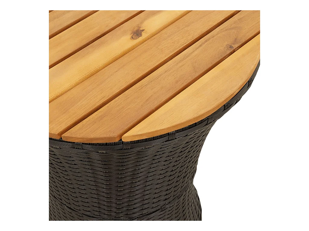Tavolino Giardino Forma Tamburo Nero Polyrattan Legno Massello