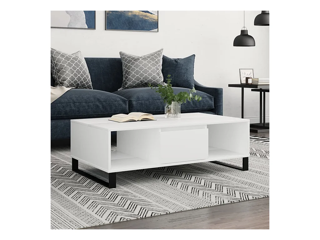 Tavolino da Salotto Bianco 102x55x35 cm in Legno Multistrato