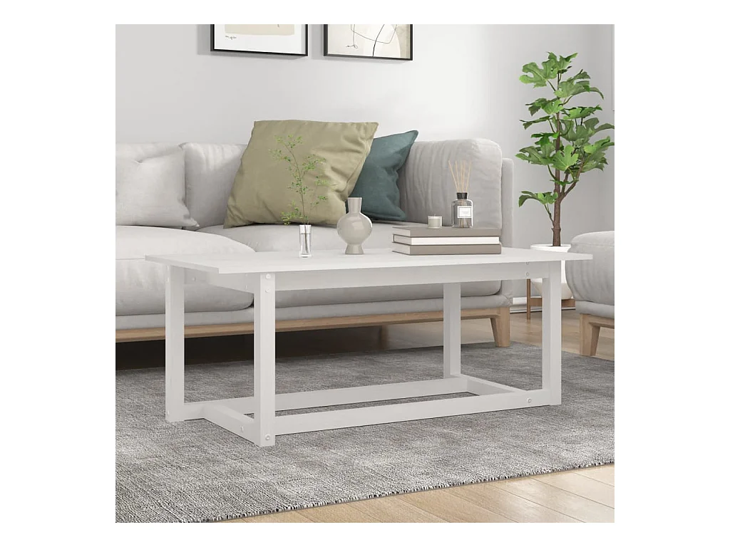 Tavolino Gold Bianco 110x55x45 cm Legno di pino massiccio