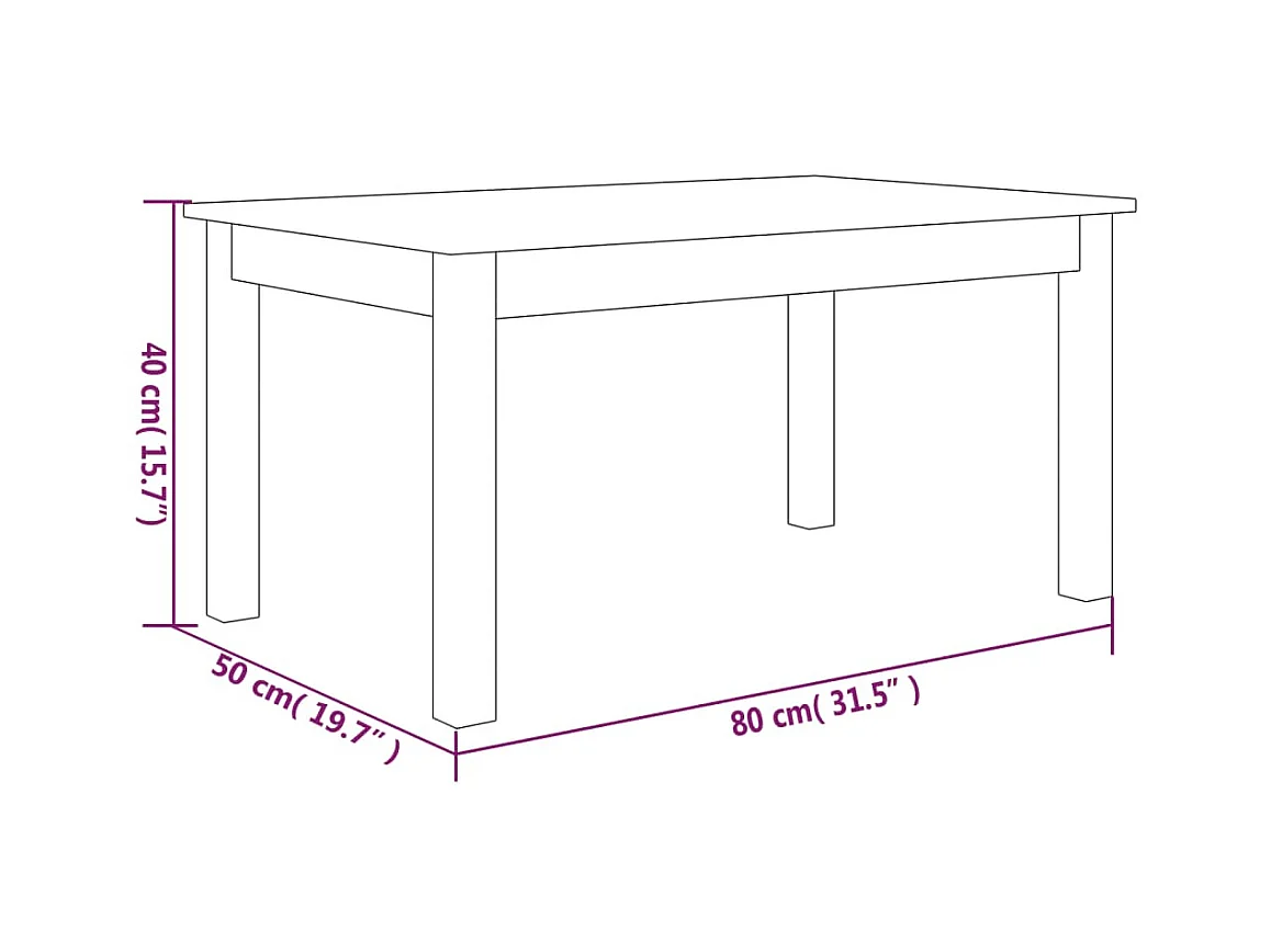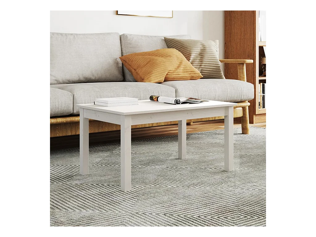 Tavolino Gold Bianco 80x50x40 cm Legno di pino massiccio