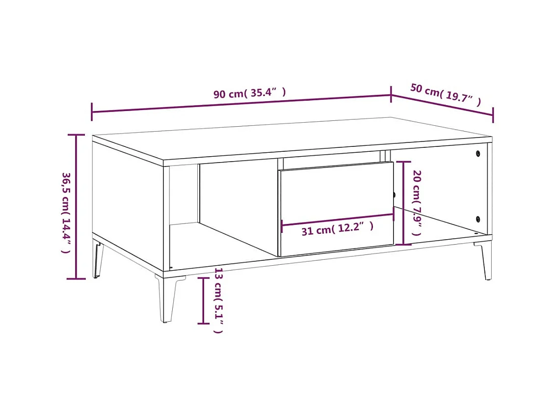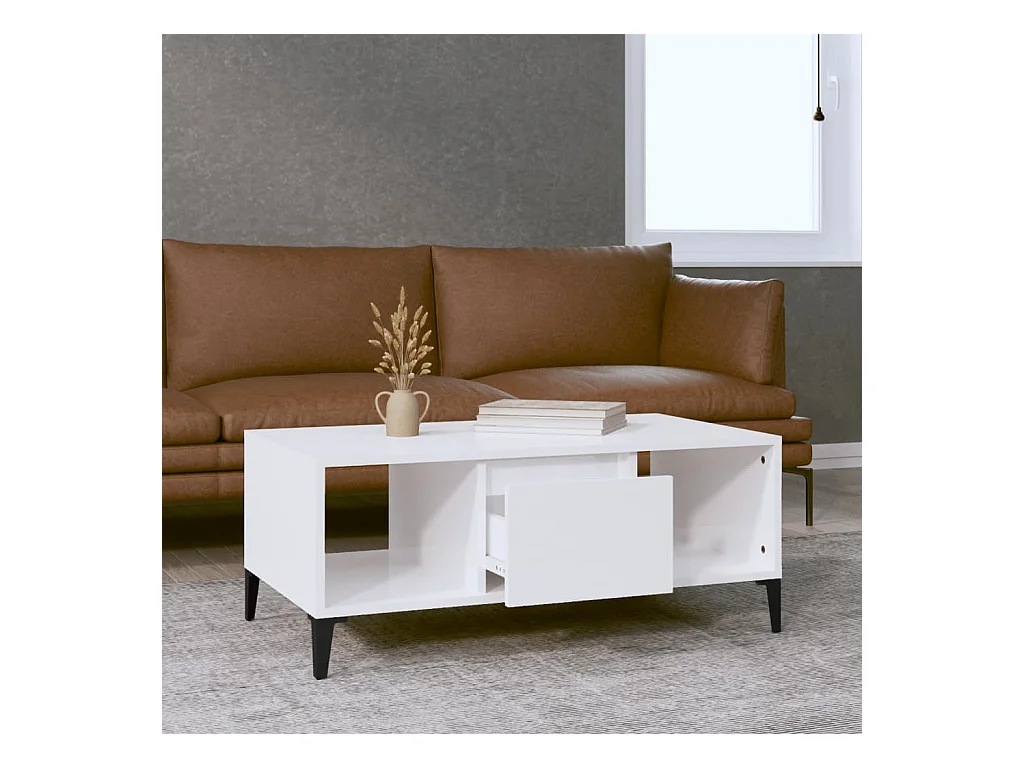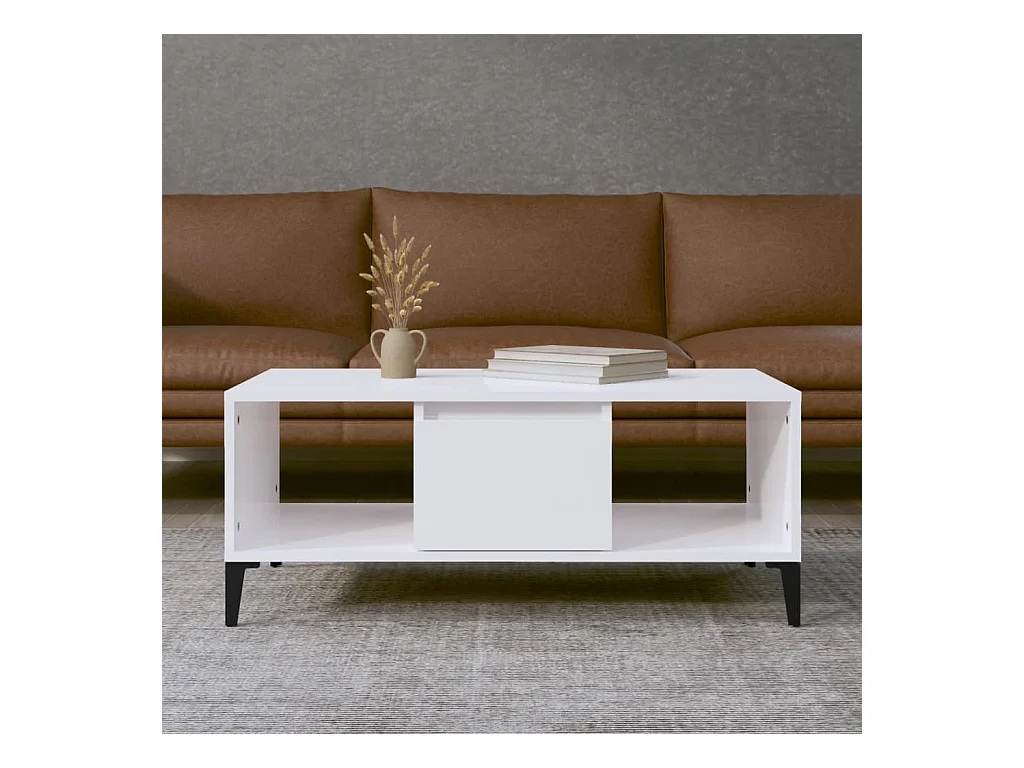 Tavolino Gold Bianco lucido 90x50x36,5 cm MDF