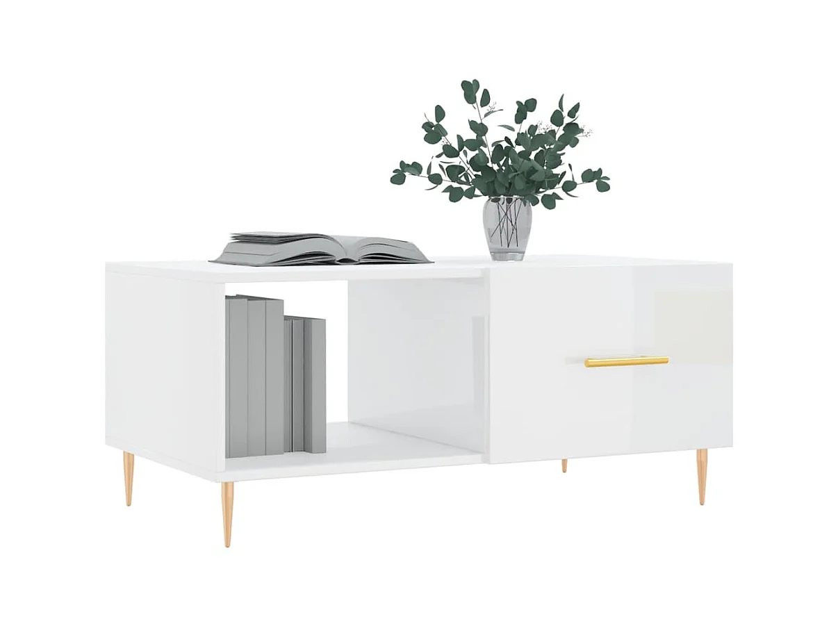 Tavolino Gold Bianco lucido 90x50x40 cm MDF