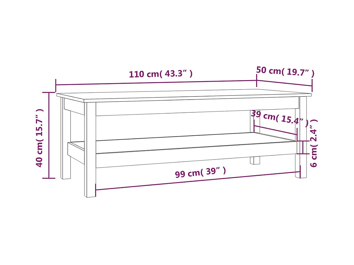 Tavolino Gold 100x50x40 cm Legno di pino massiccio