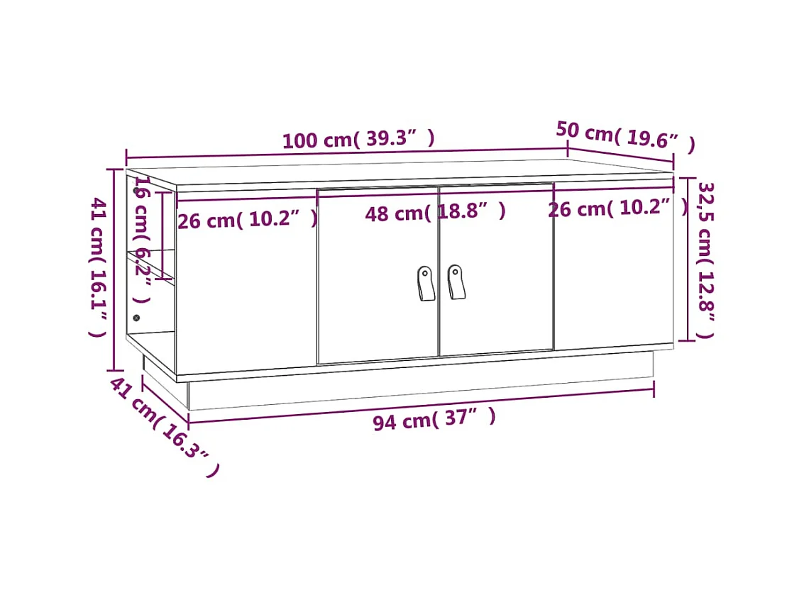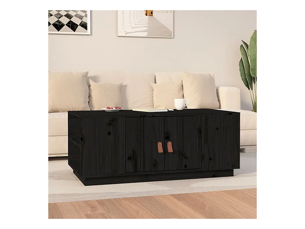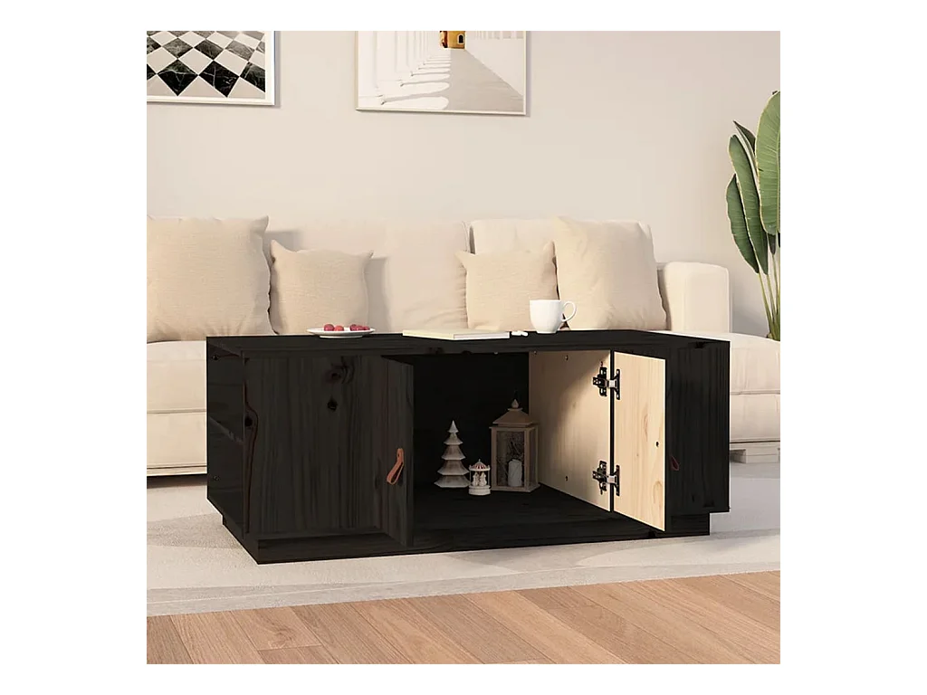 Tavolino Gold Nero 100x50x41 cm Legno di pino massiccio