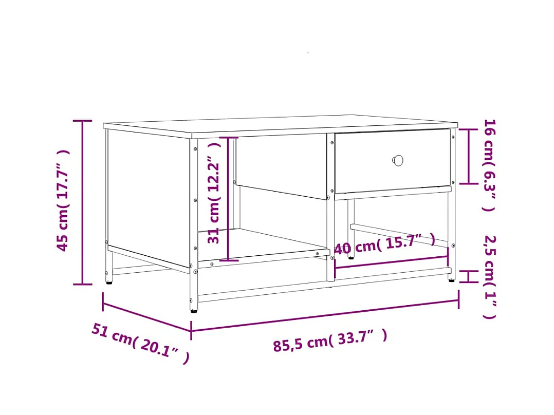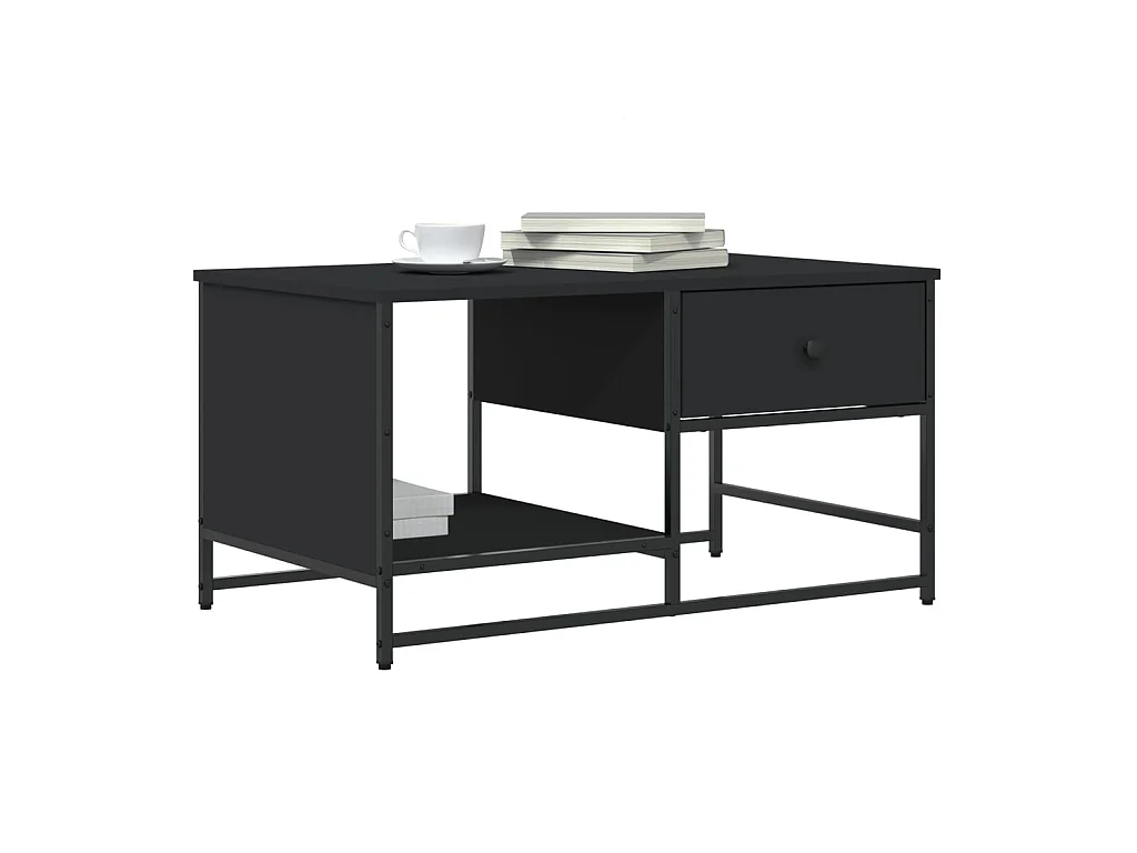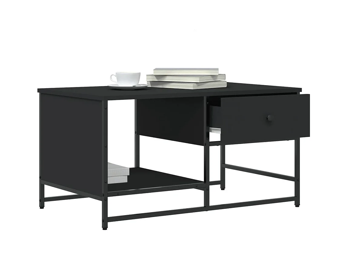 Tavolino Salotto Nero 100x50x45 cm Legno Multistrato e Metallo