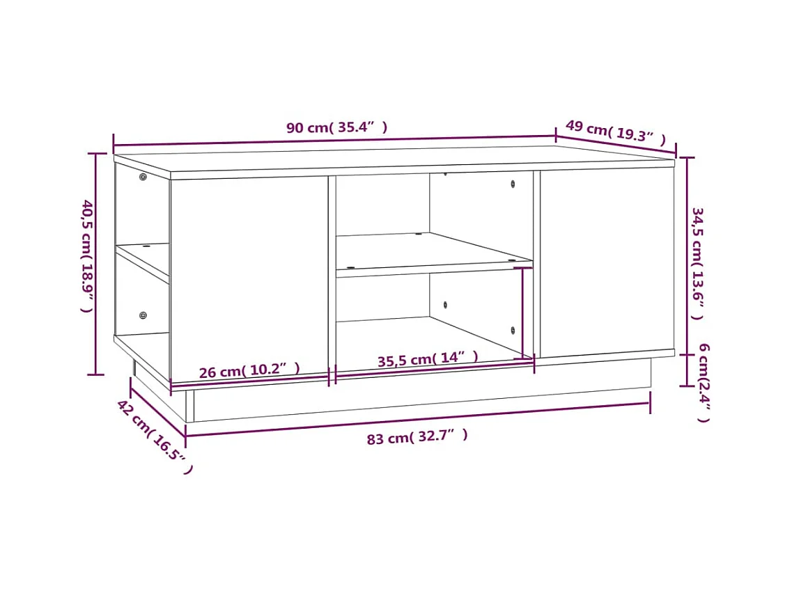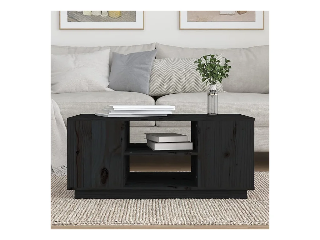 Tavolino Gold Nero 90x49x40,5 cm Legno di pino massiccio