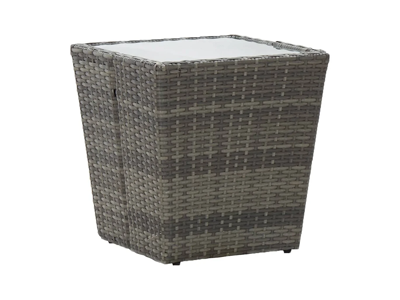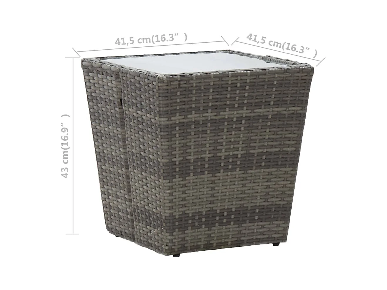 Tavolino Grigio 41,5x41,5x43 cm in Polyrattan e Vetro Temperato