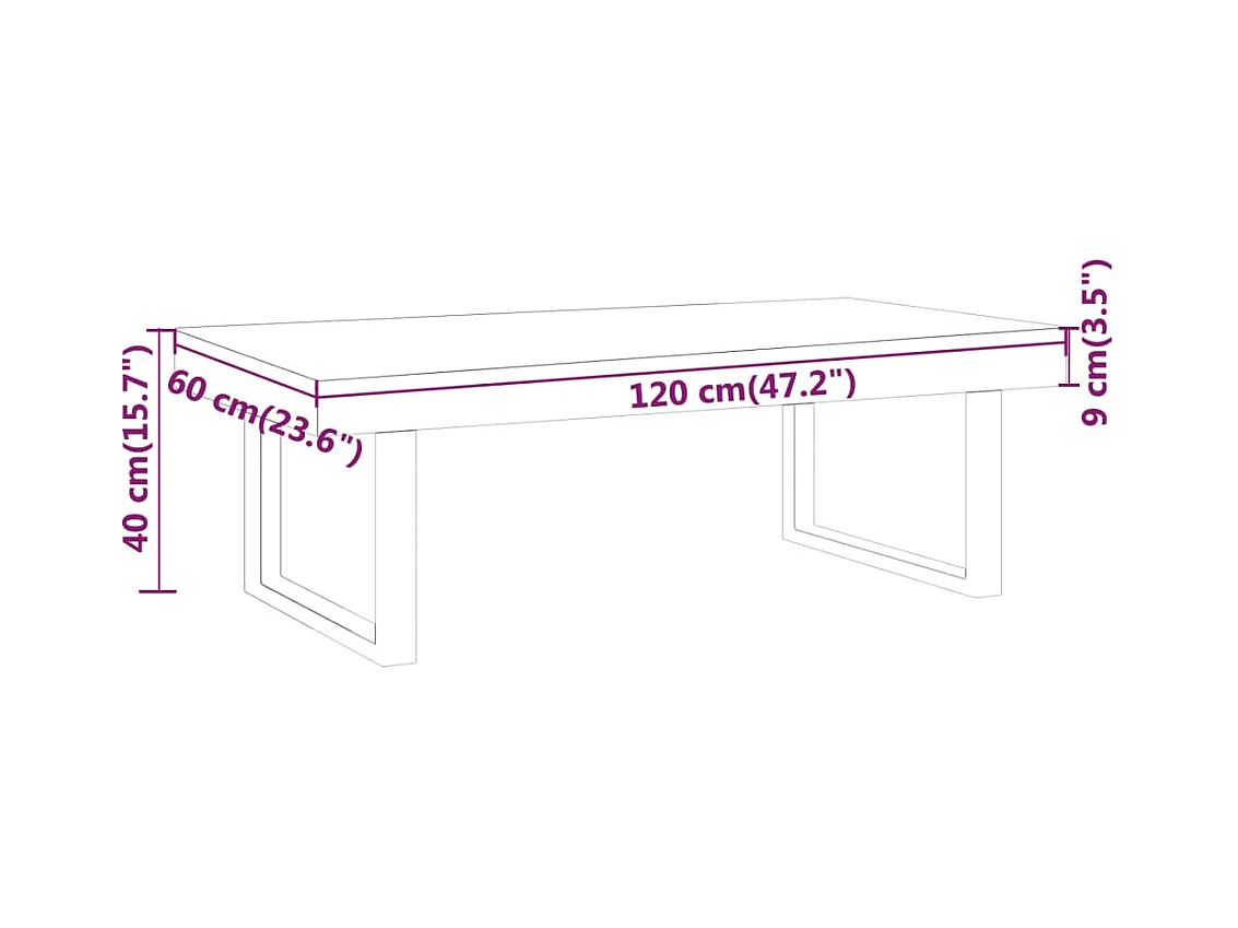 Tavolino da caffè Grigio 100x60x40 cm Legno massello di mango grezzo