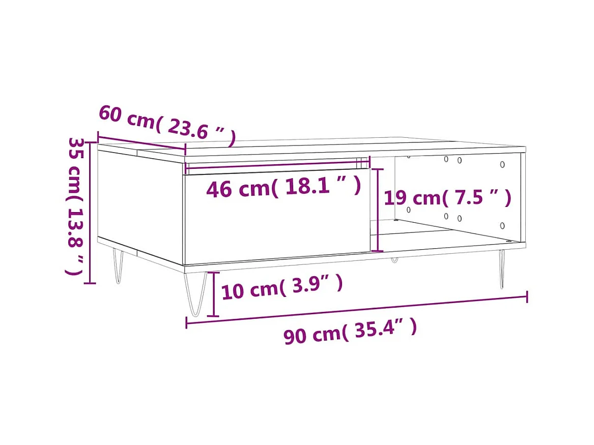 Tavolino grigio Gold Sonoma 90x60x35 cm in multistrato