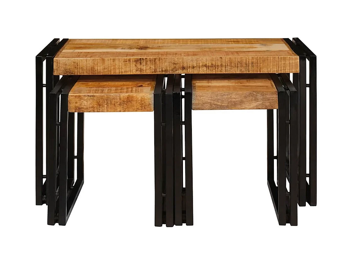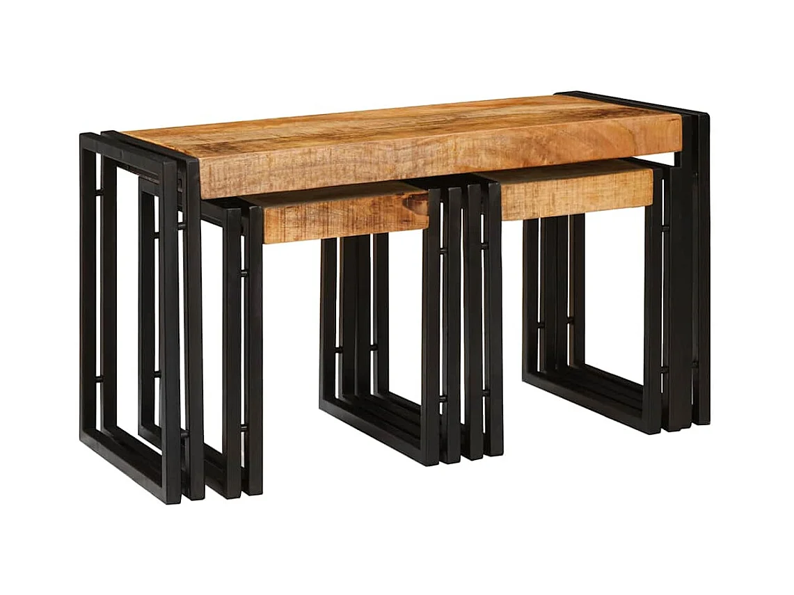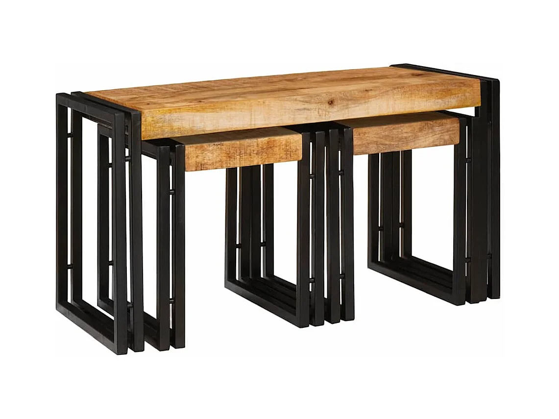 Tavolino impilabile 3 pezzi Legno massello di mango grezzo e metallo
