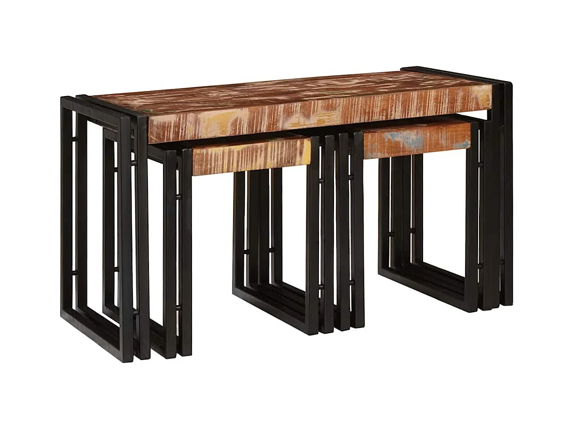 Tavolino impilabile 3 pezzi Legno massello di mango grezzo e metallo