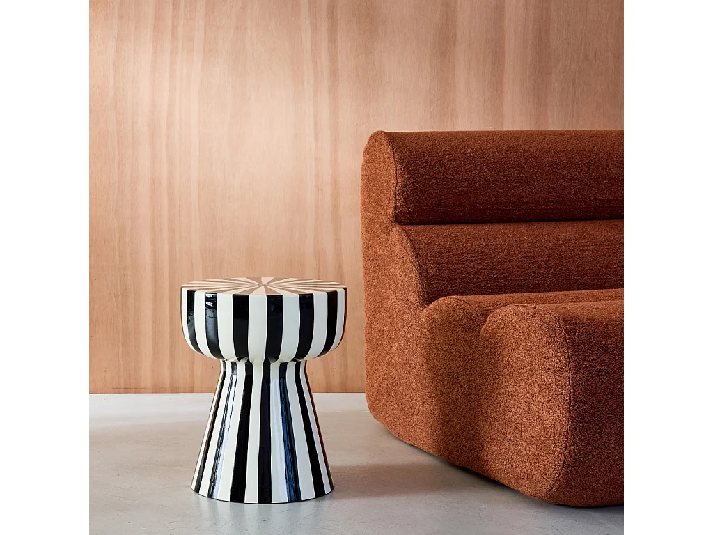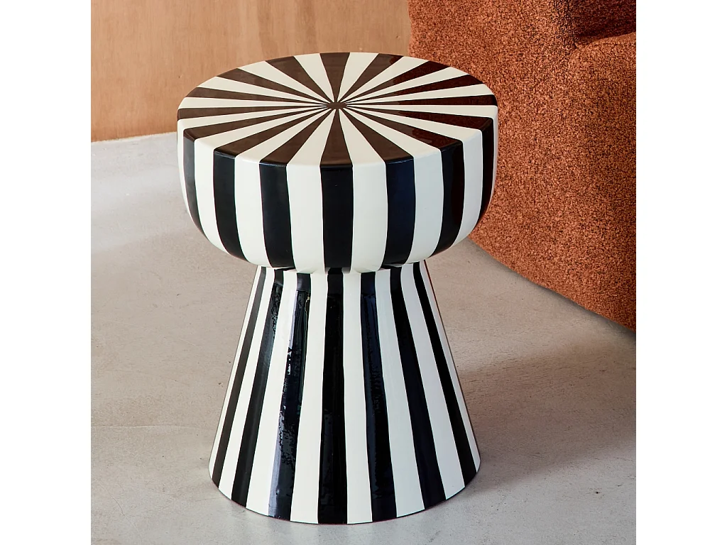 Tavolino in acciaio smaltato a righe bicolore, 41cm, nero