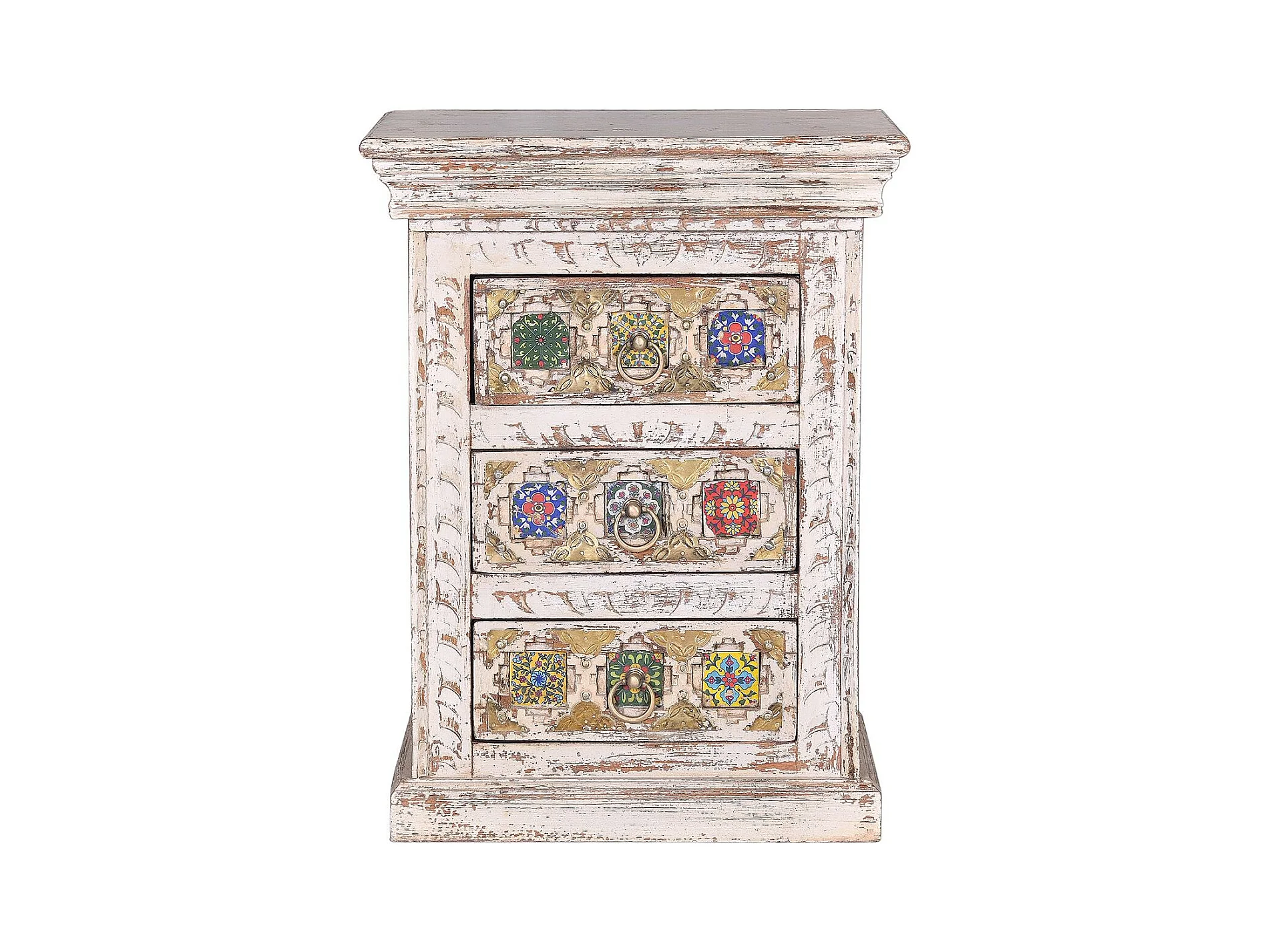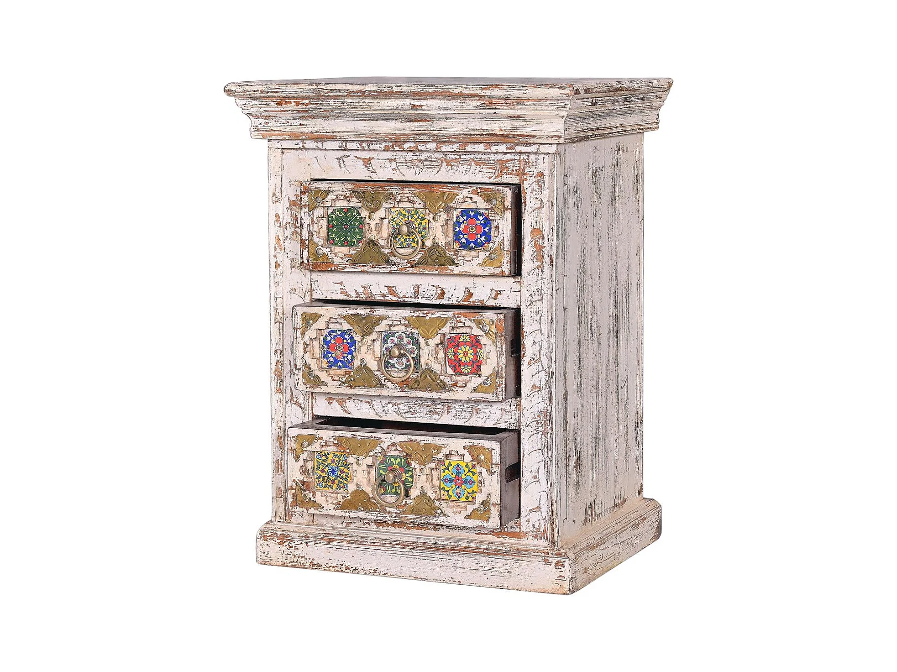 Tavolino in legno di mango con dettagli in ceramica e bronzo Blanco .60x35x45 Giner y Colomer