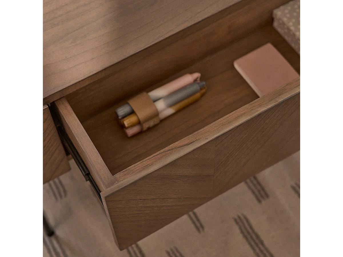 Tavolino in legno massello di mindi con piedi in metallo 120 cm