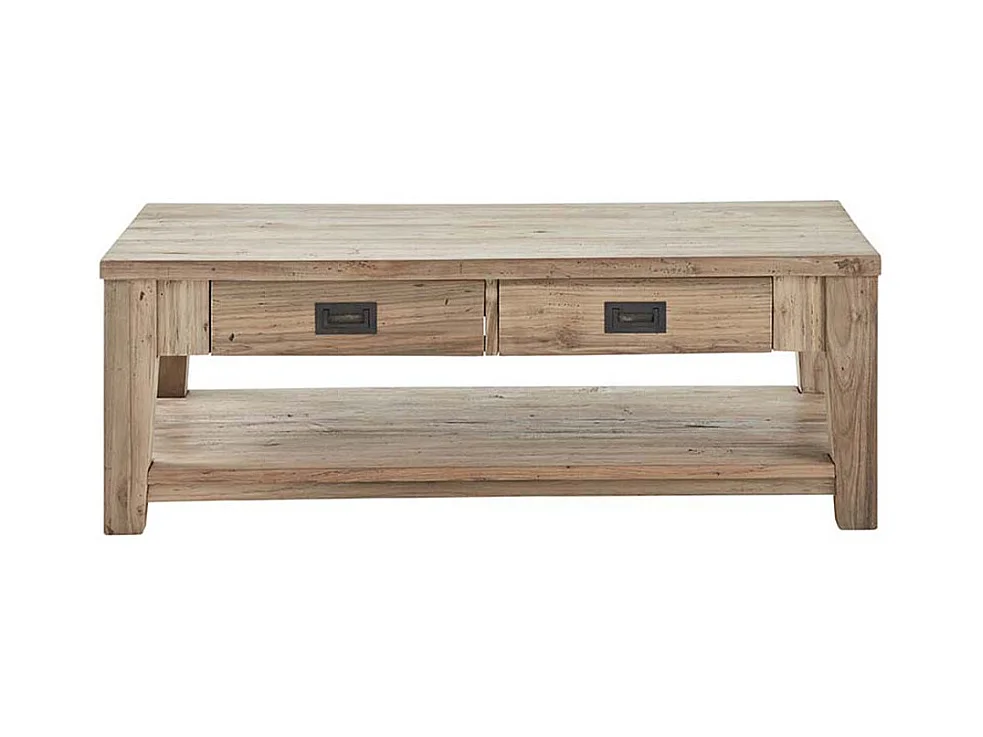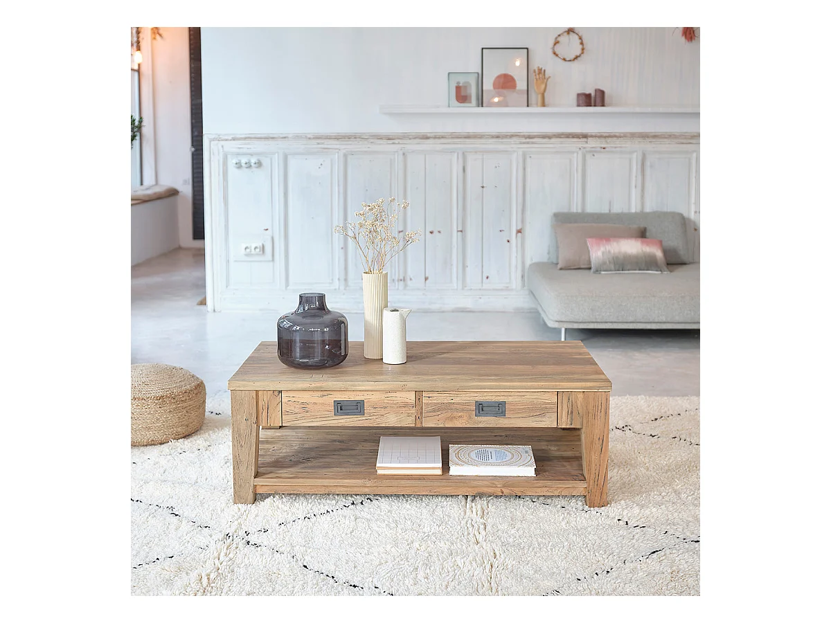 Tavolo basso in mindi massello e vimini 4 cassetti 110 cm
