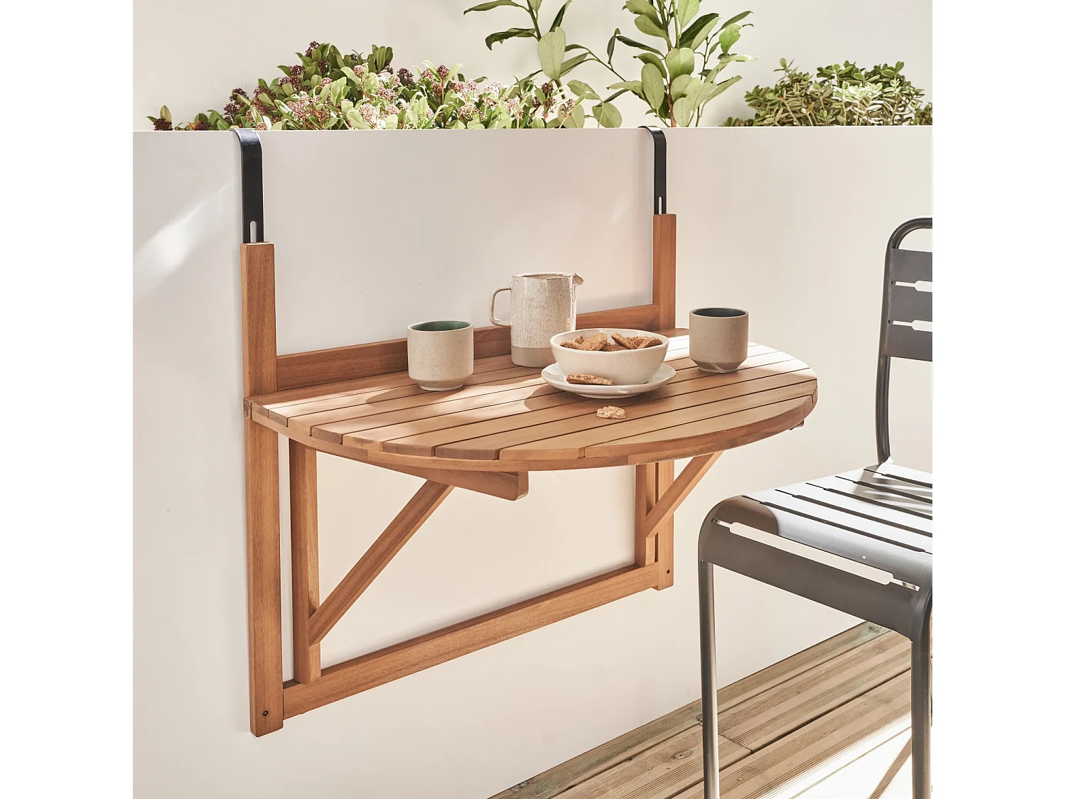 Tavolino in legno, semirotondo, pieghevole, 70cm, marrone naturale