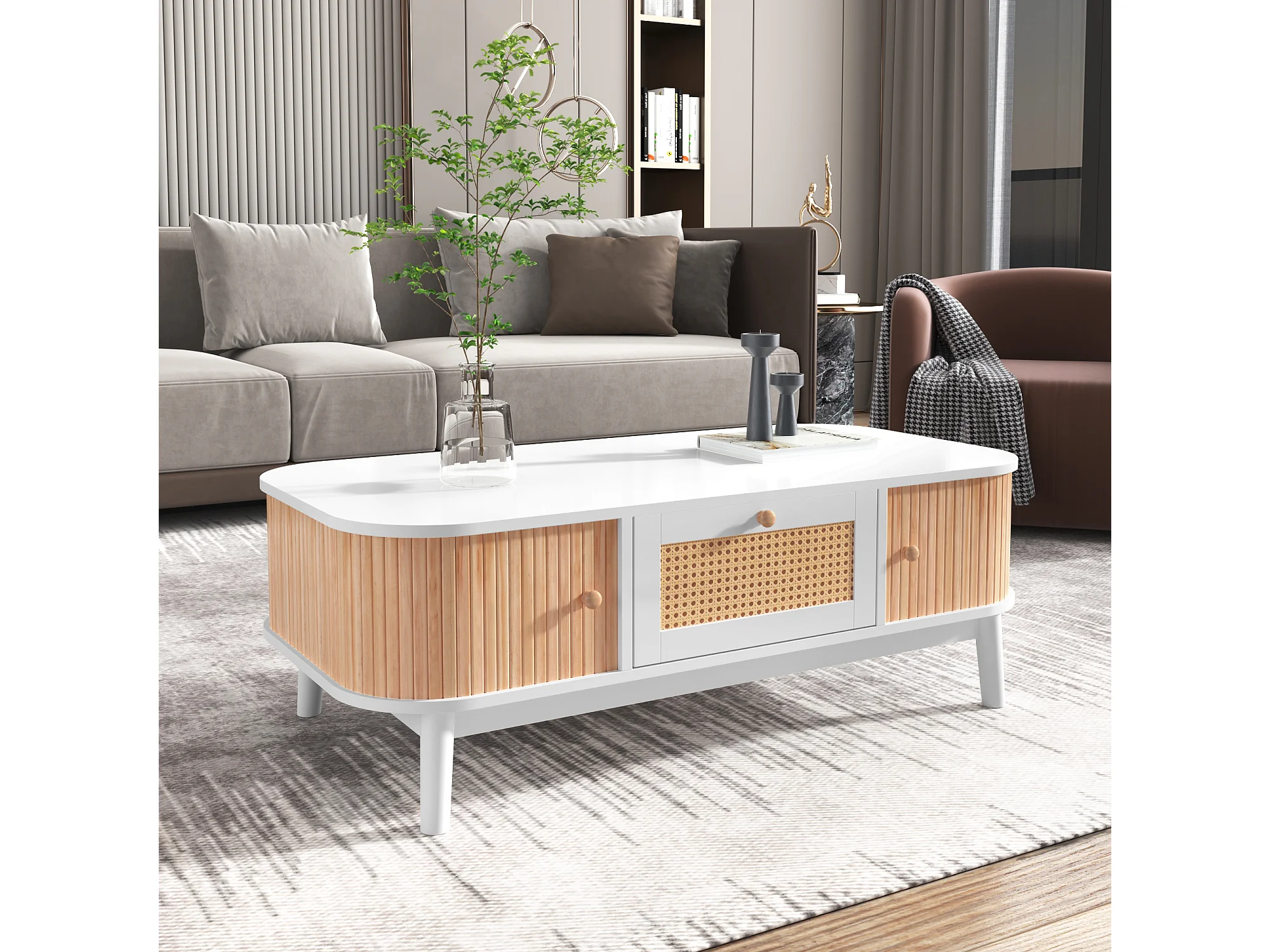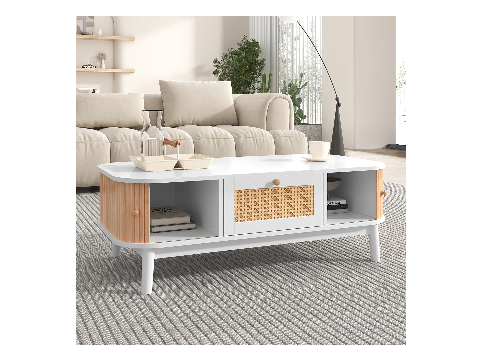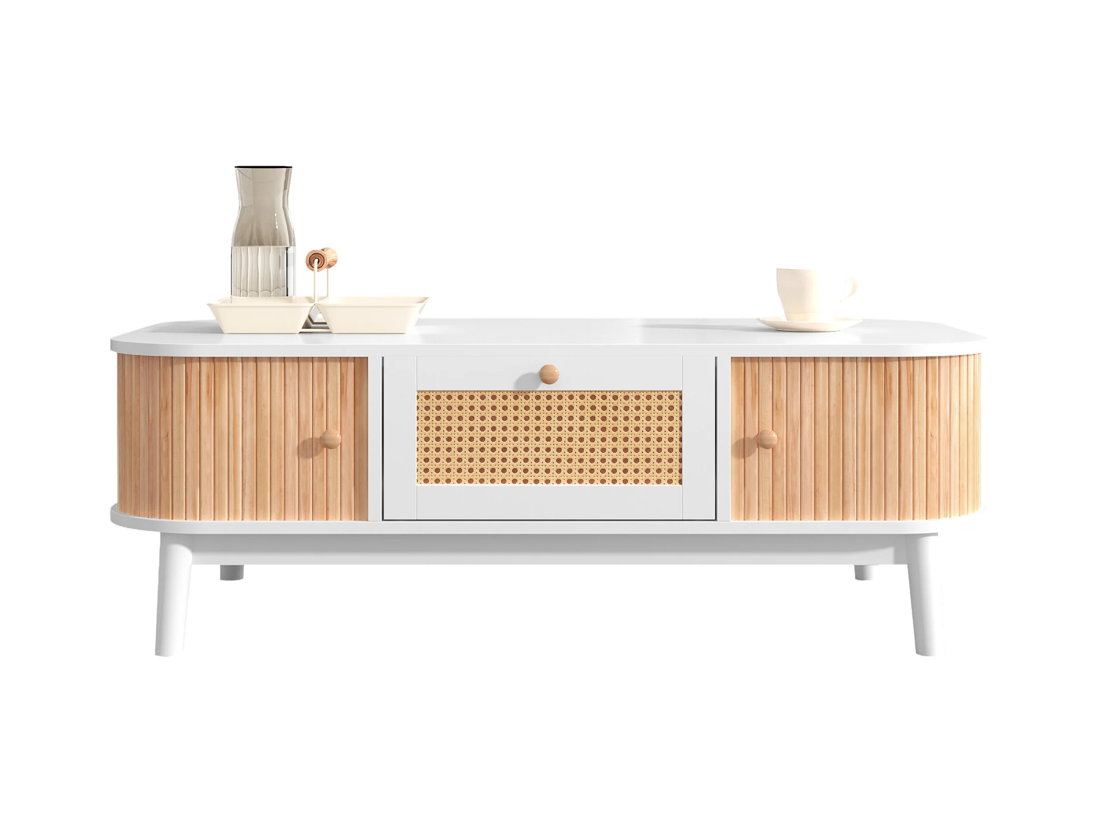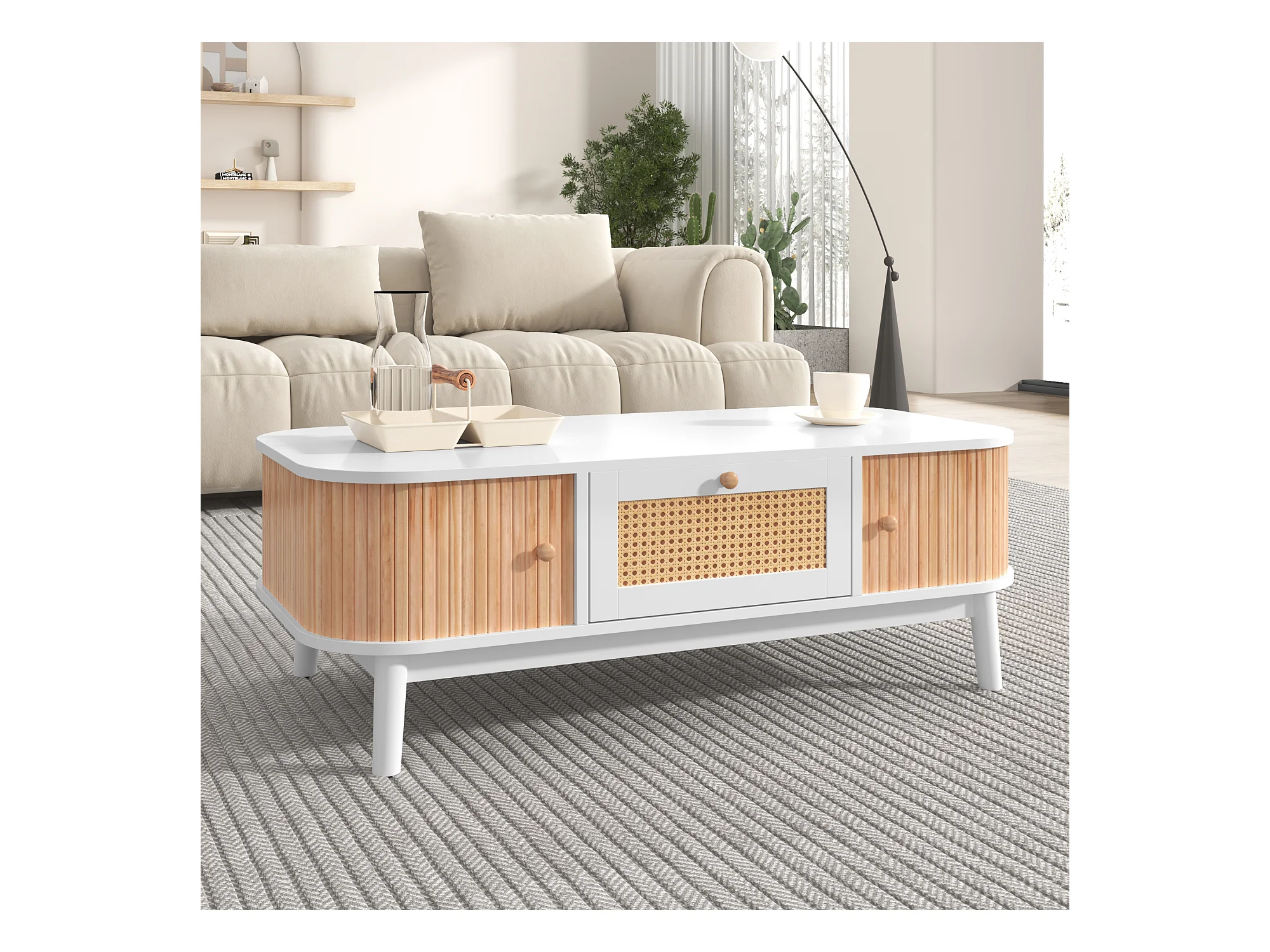 Tavolino in rattan con cassetti e ante in stile country naturale