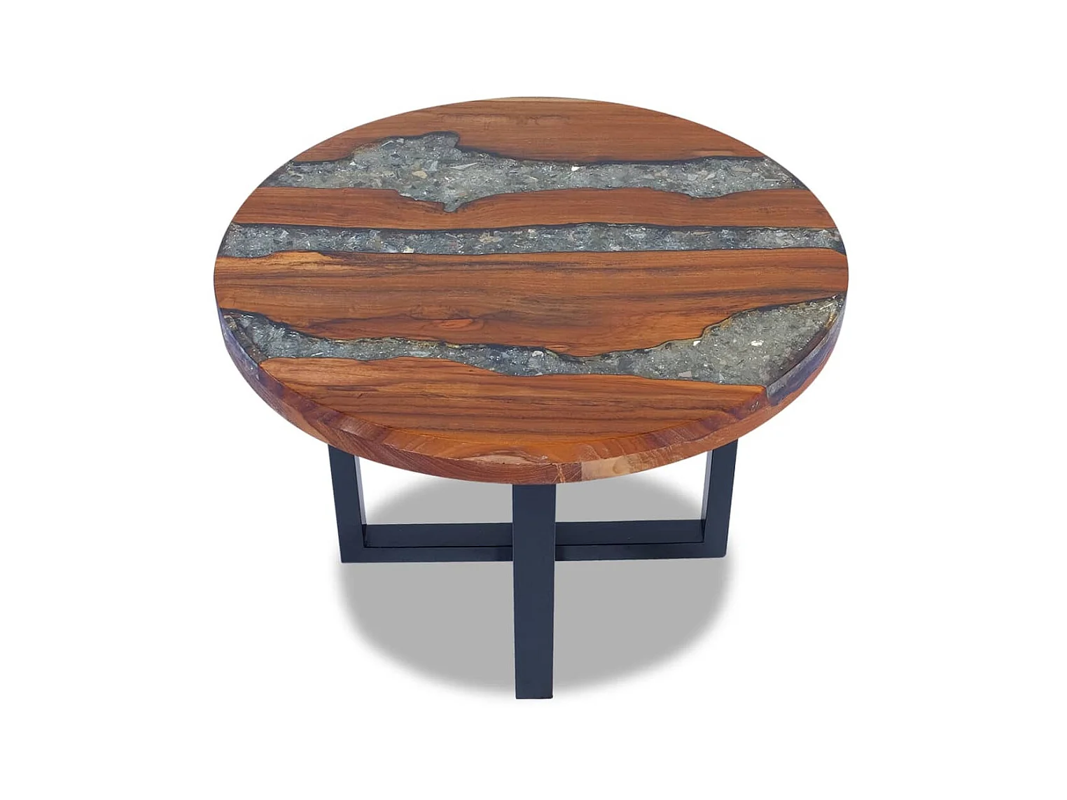 Tavolino Gold Ø65x31 cm Legno massello di recupero