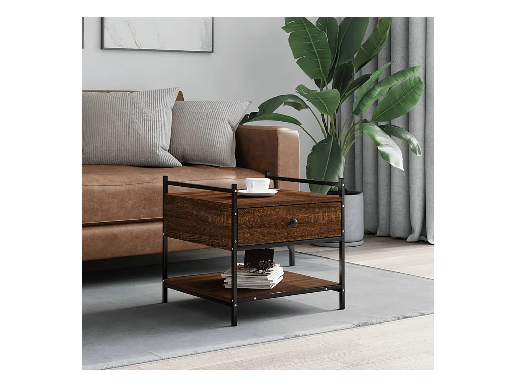 Tavolino Salotto Rovere Marrone 100x50x50cm Multistrato Metallo