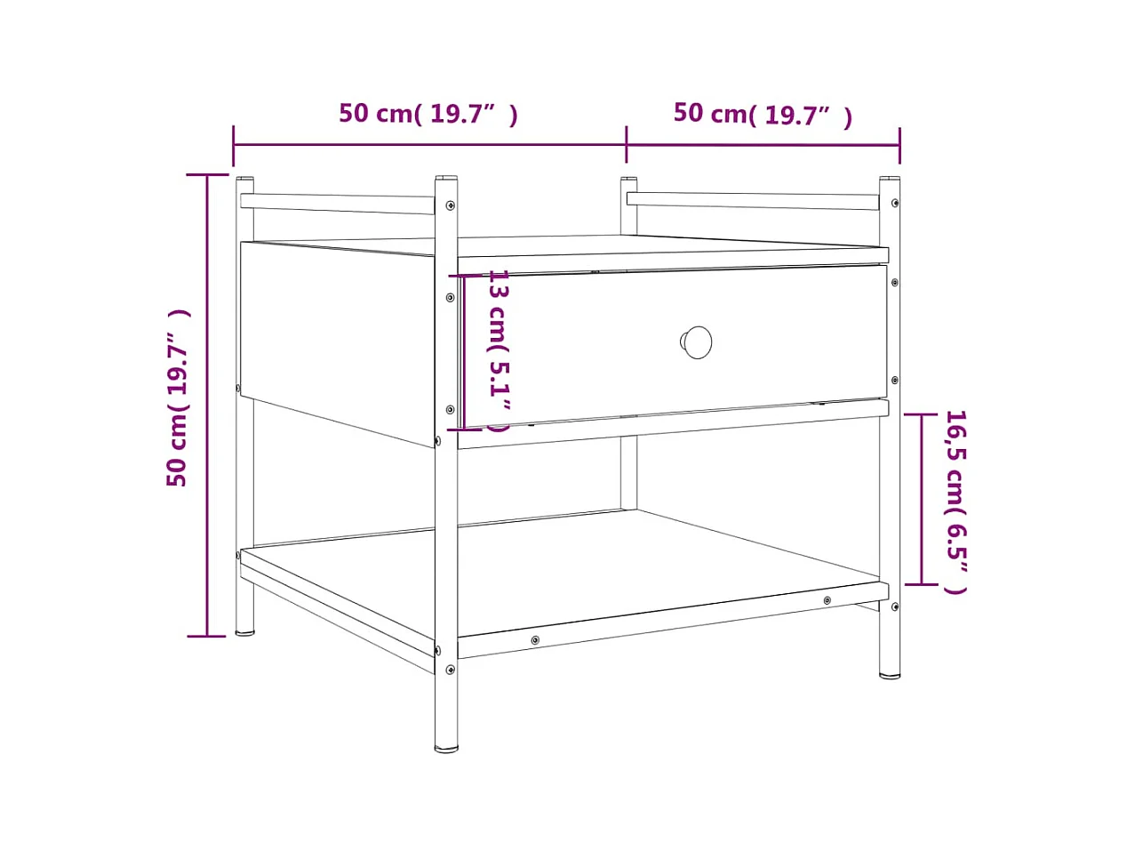 Tavolino Salotto Rovere Sonoma 70x50x50 cm Multistrato Metallo