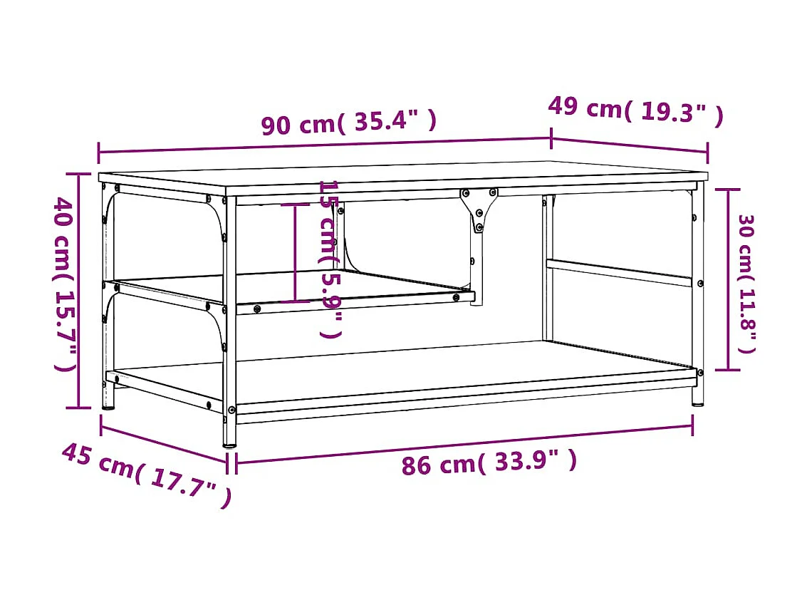 Tavolino rovere Sonoma 90x49x45 cm MDF