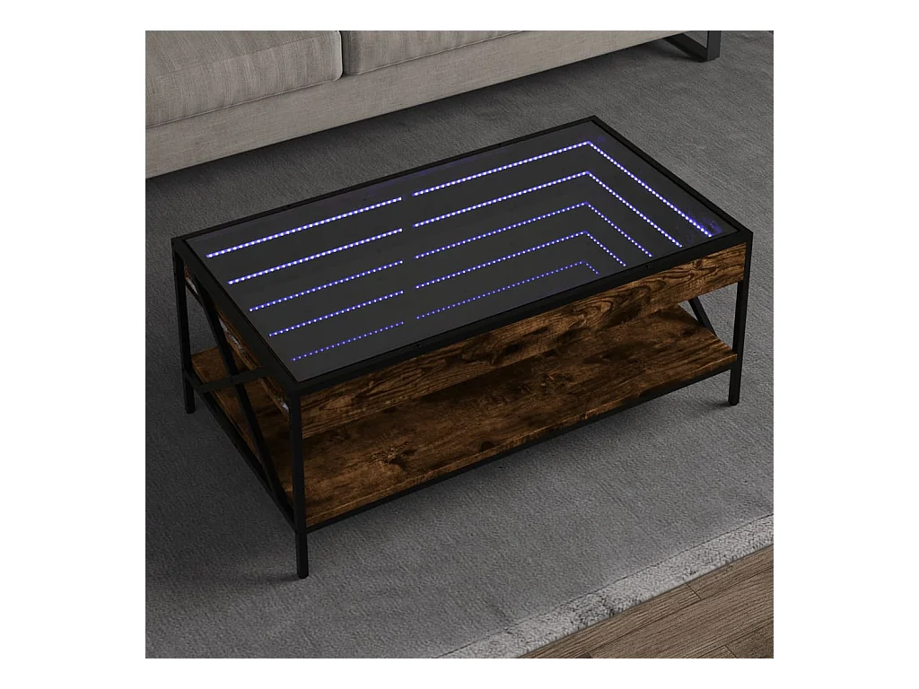 Tavolino Infinity in rovere fumé con LED 90x50x38 cm