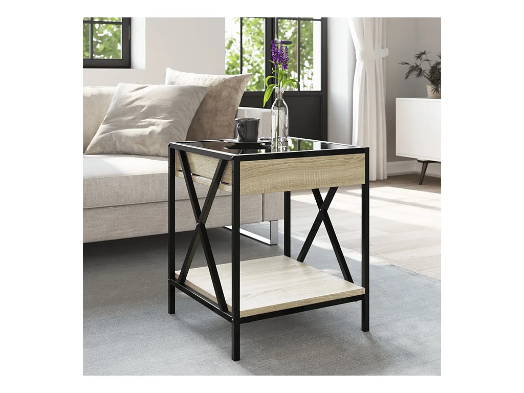 Tavolino laterale in rovere affumicato 40x40x35 cm in legno ingegnerizzato
