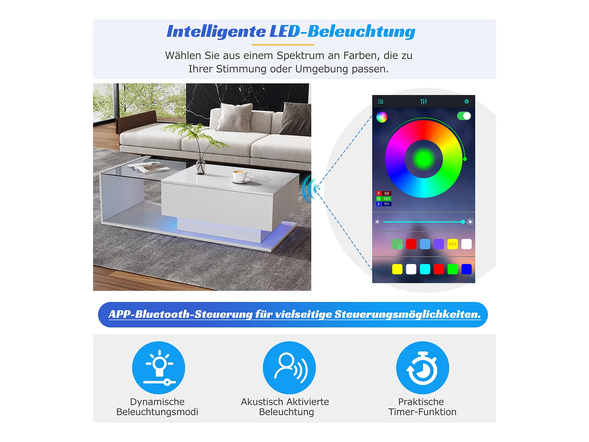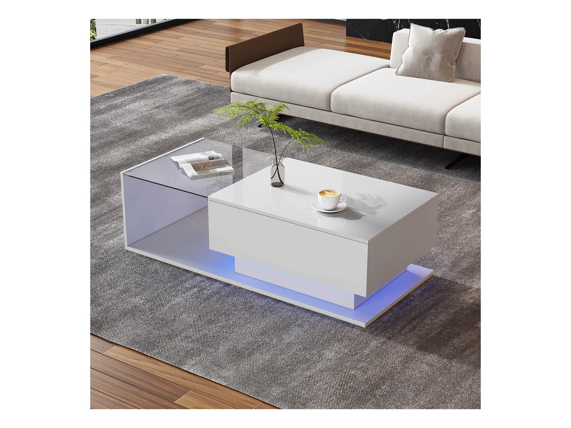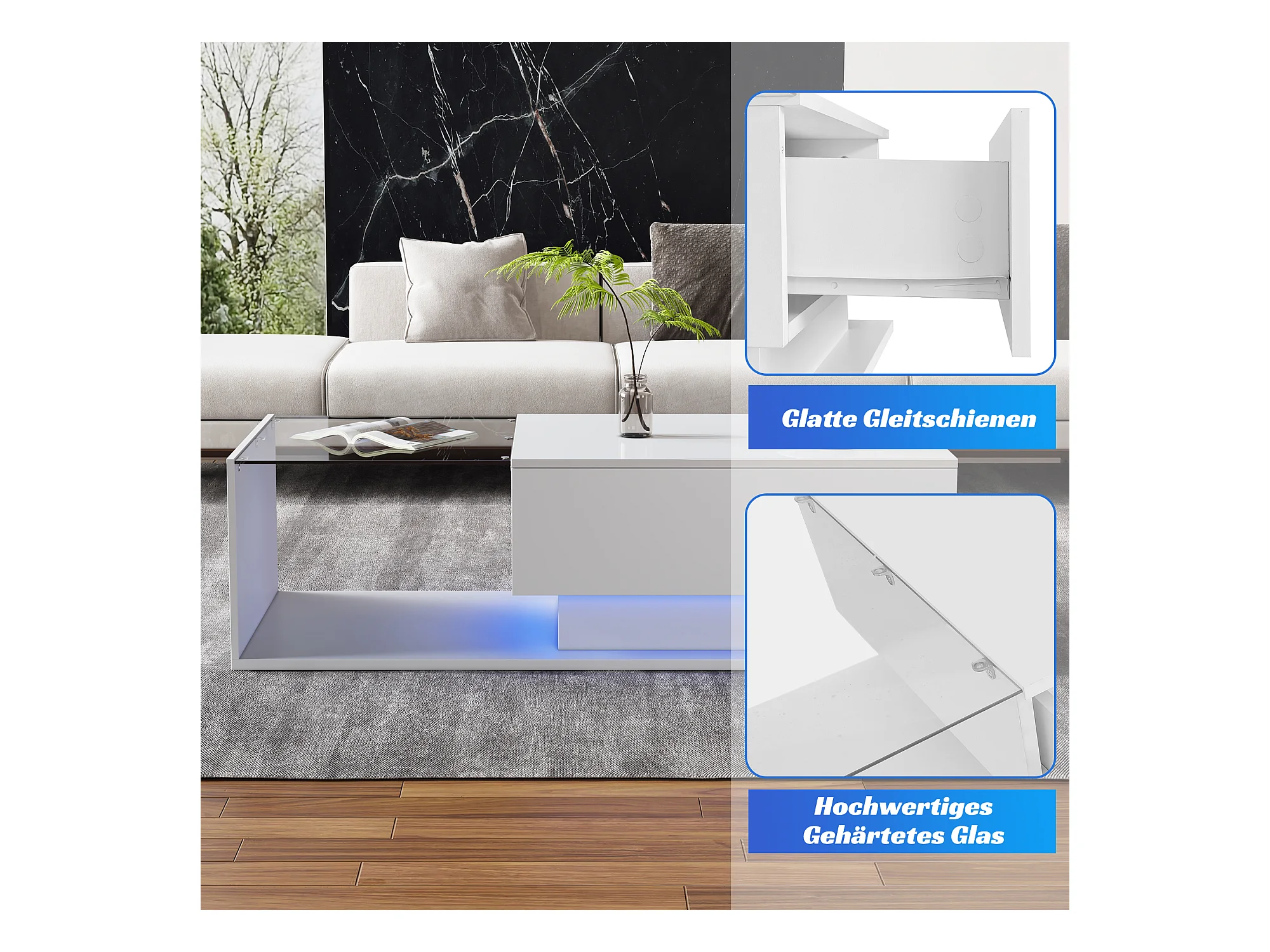 Tavolino da caffè lucido con LED, quattro cassetti e ampio spazio di archiviazione (80x50x36 cm)