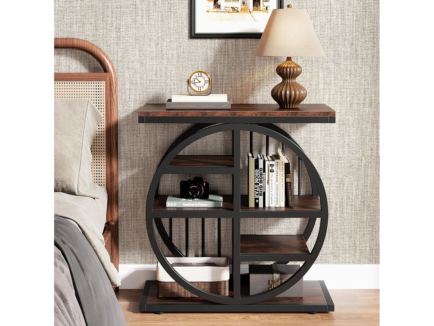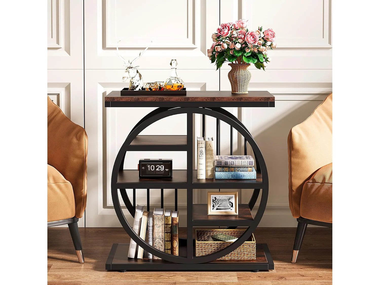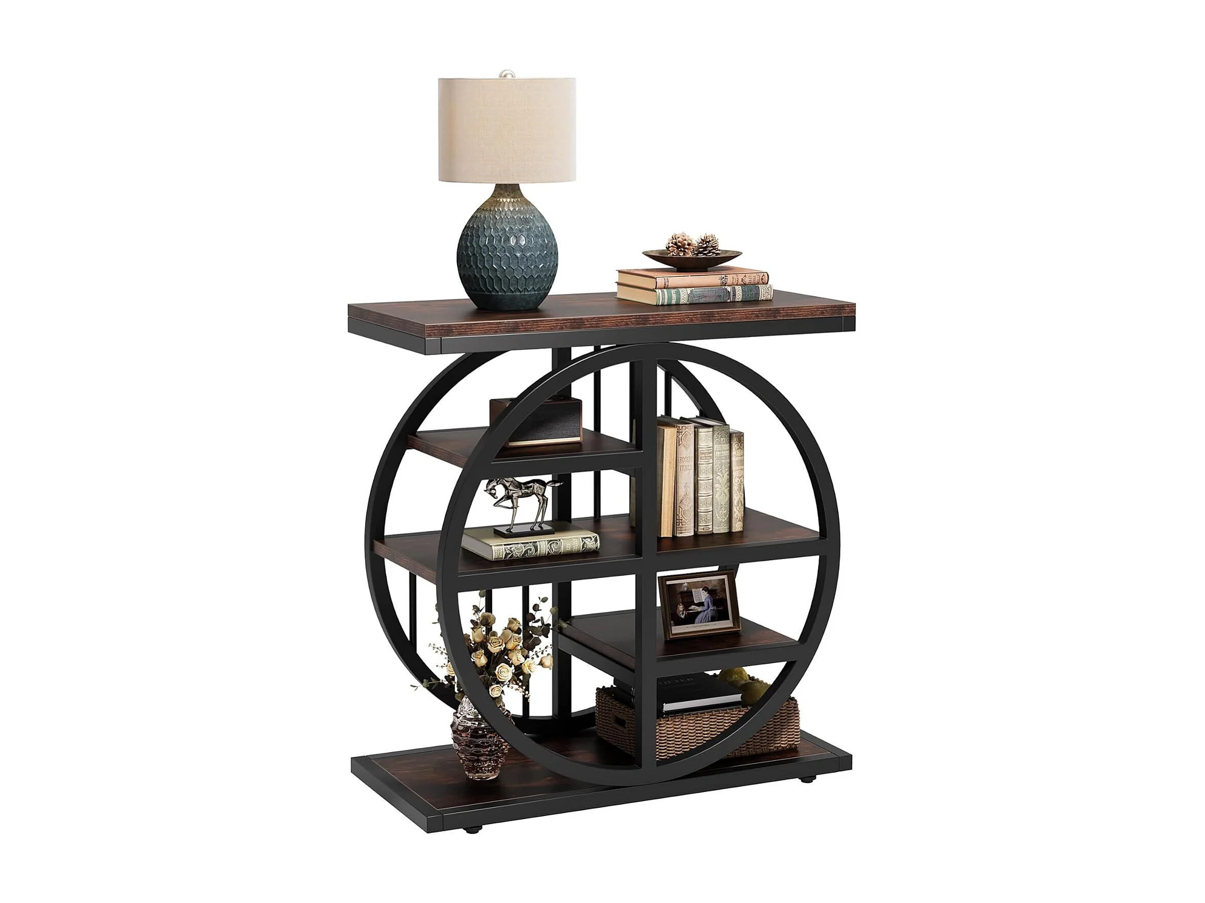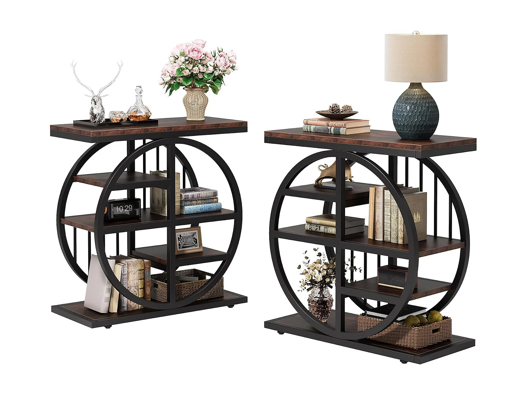 Tavolino laterale a 5 ripiani in legno pregiato 60 x 30 cm Tavolino da caffè con struttura in metallo Tavolino laterale industriale