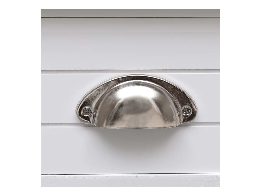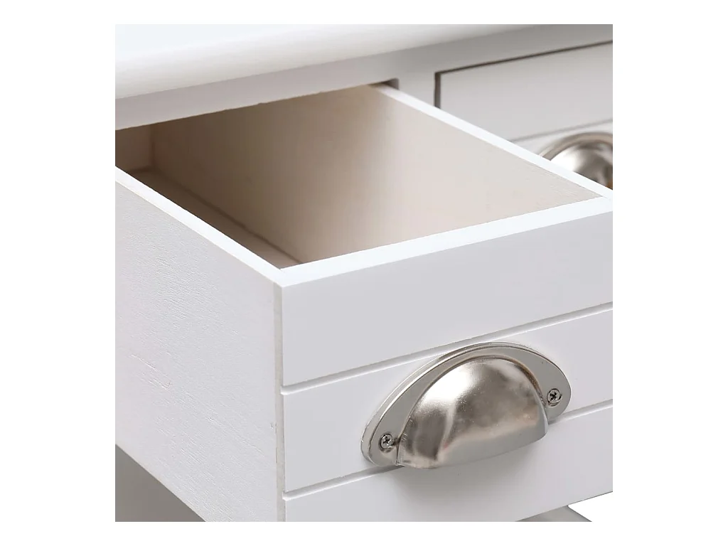 Tavolino moderno con superficie lucida, contenitore con cassetti, MDF bianco e legno, (105x60x40 cm)