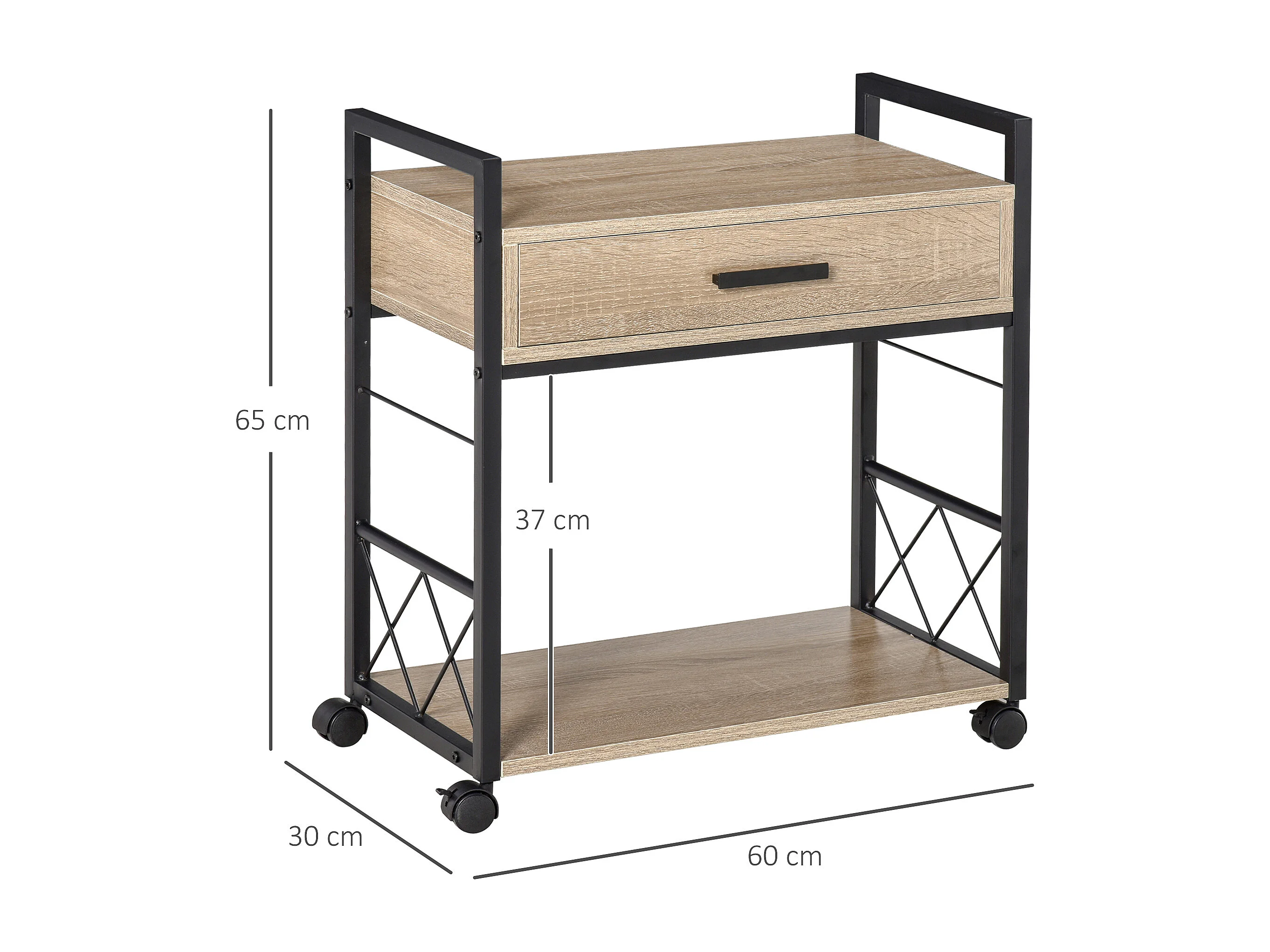 Tavolino laterale con cassetto, design elegante, pannello di particelle, rovere, per cucina e soggiorno (60x30x65cm)