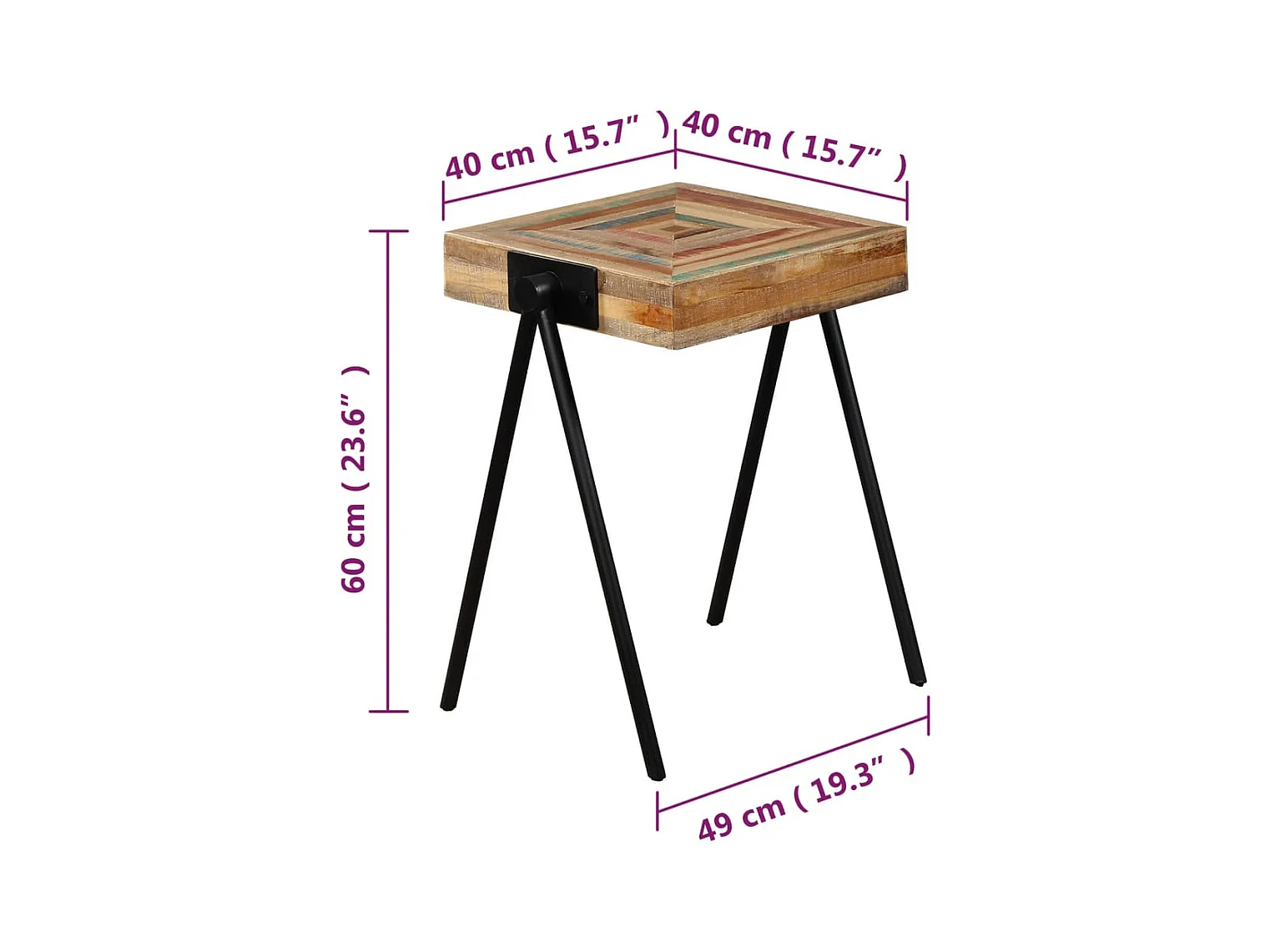 Tavolino laterale multicolore 40x40x50cm in legno massello di recupero