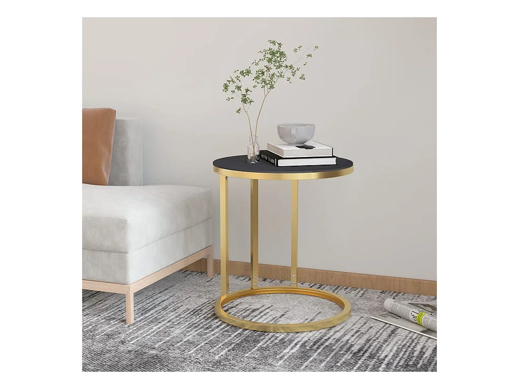 Tavolino laterale oro e nero 45 cm Vetro temperato