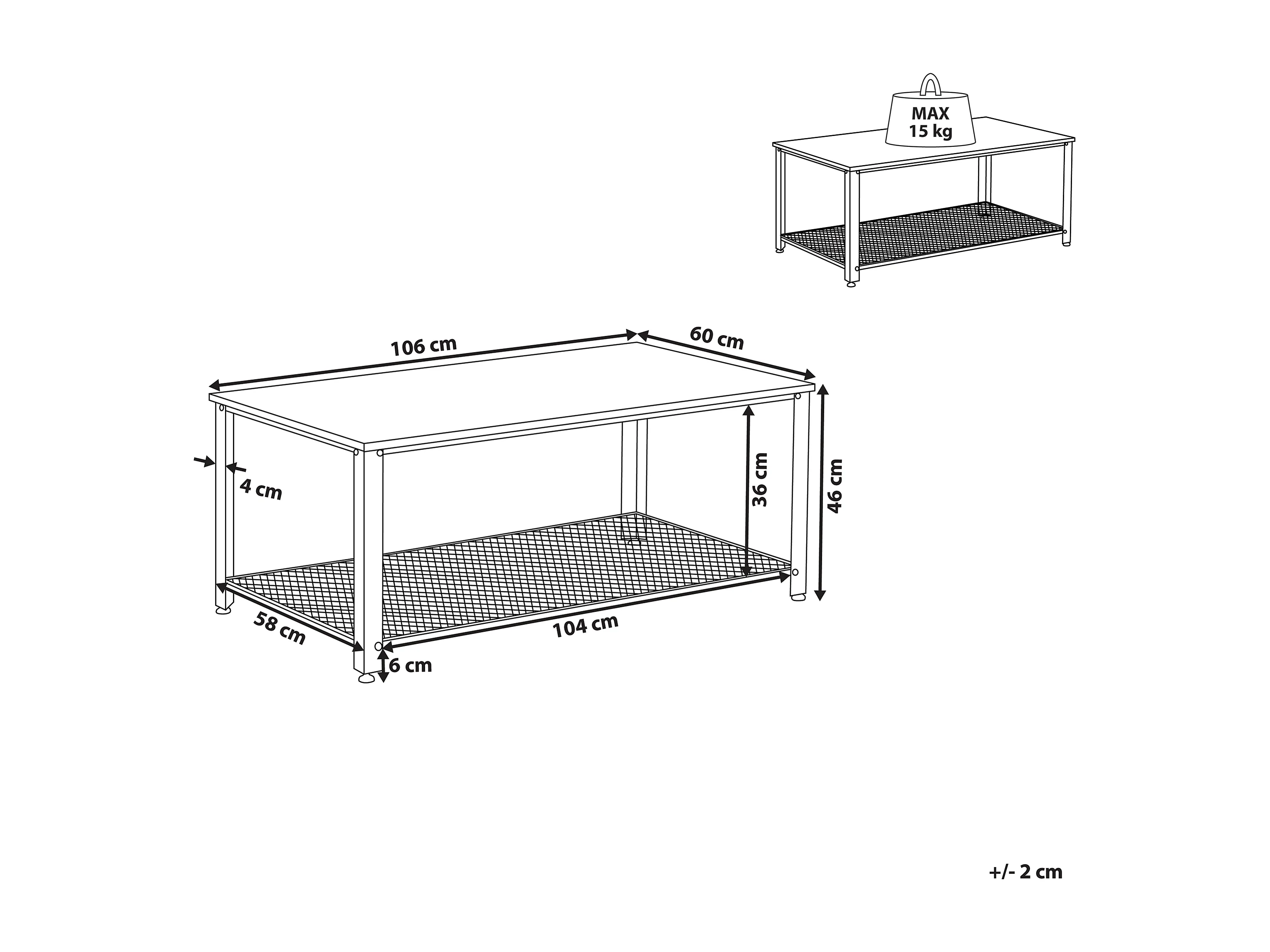 Tavolino rettangolare stile industriale