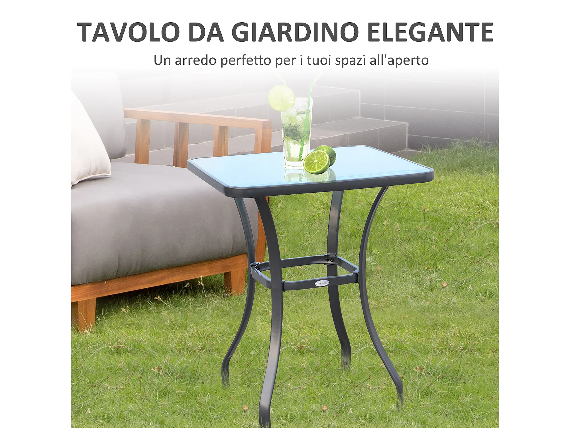 Tavolino Moderno con Piano in Vetro Temperato in Metallo per Esterno