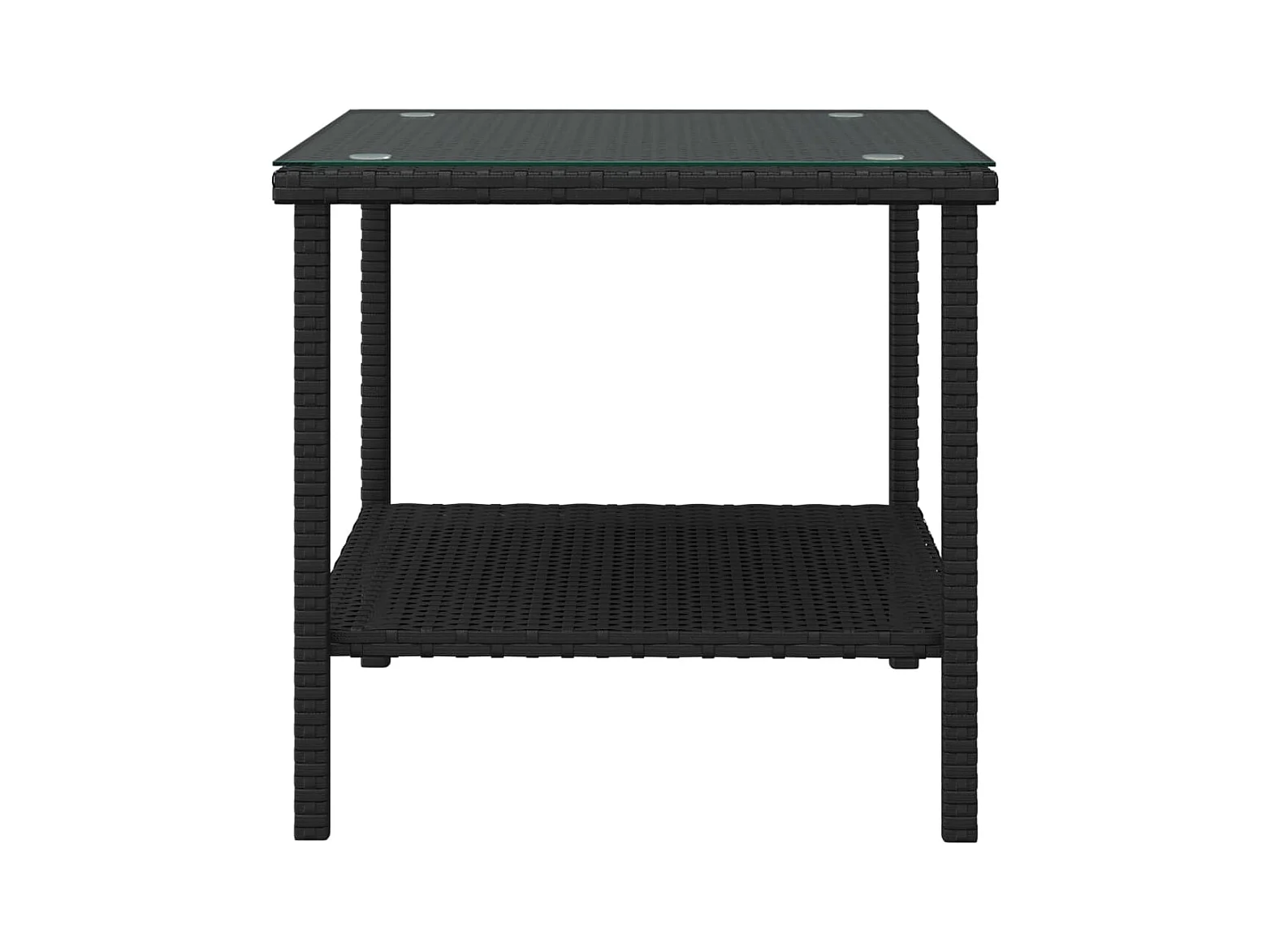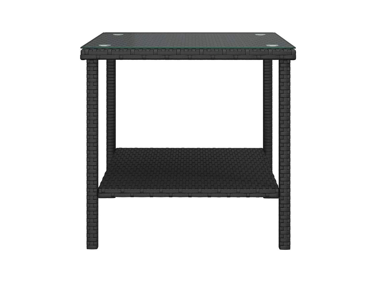 Tavolino nero 45x45x45 cm in polyrattan e vetro temperato