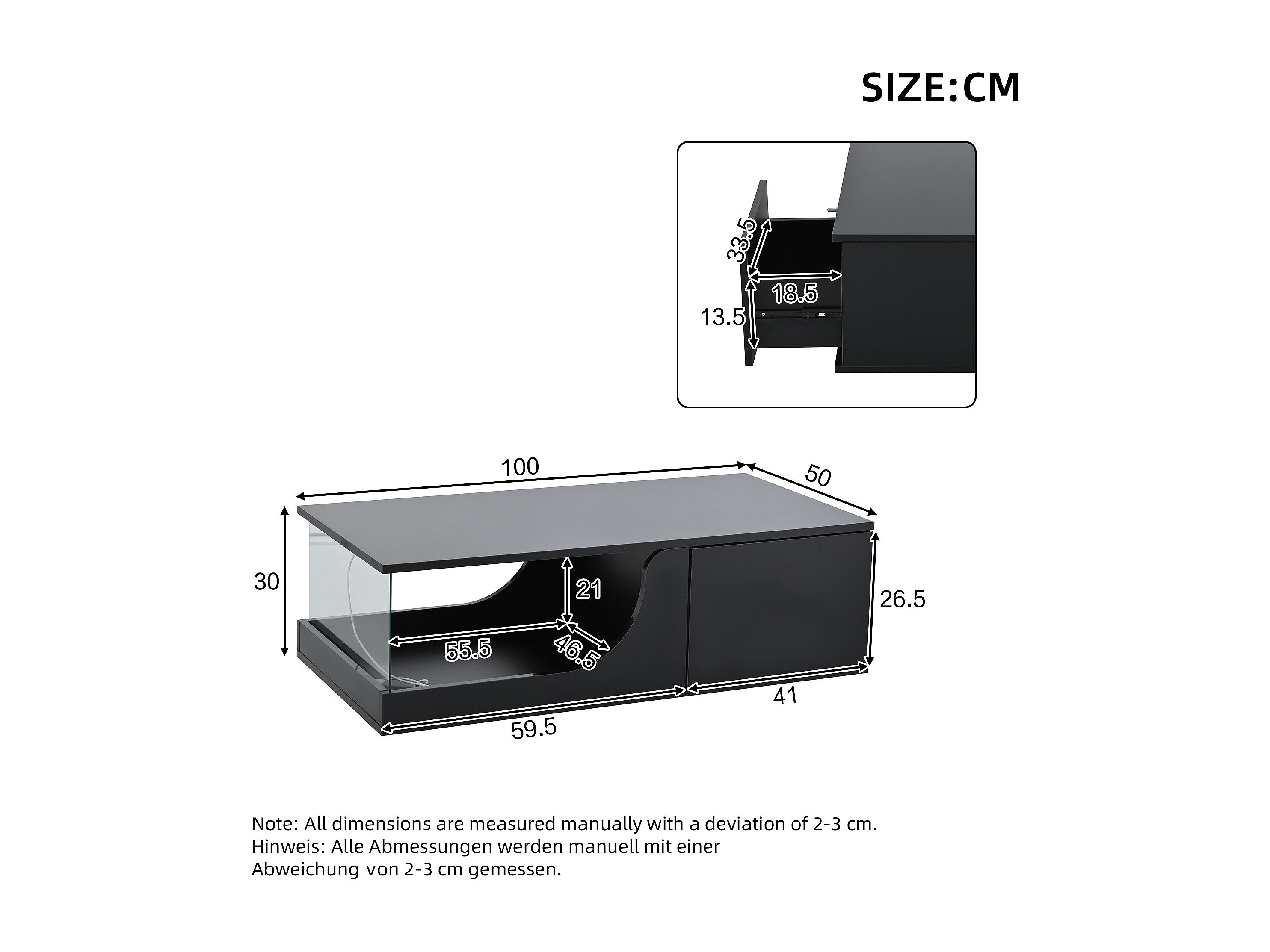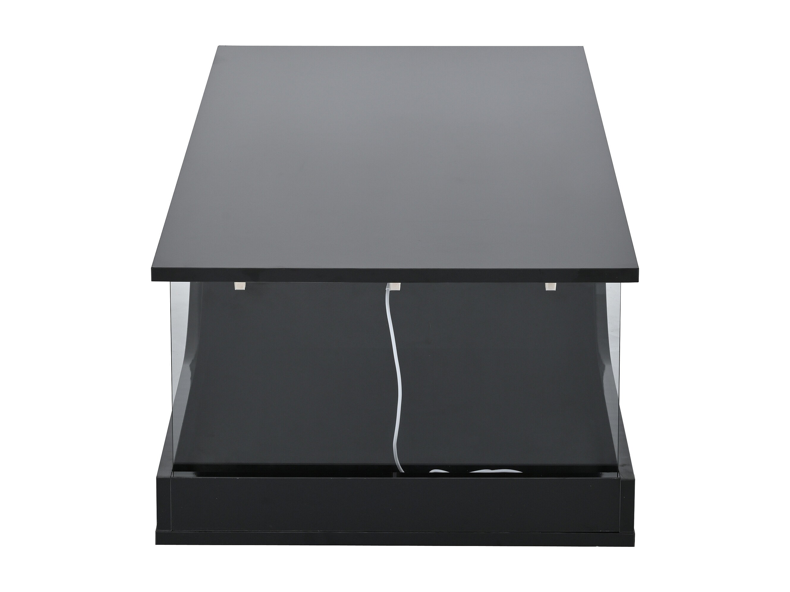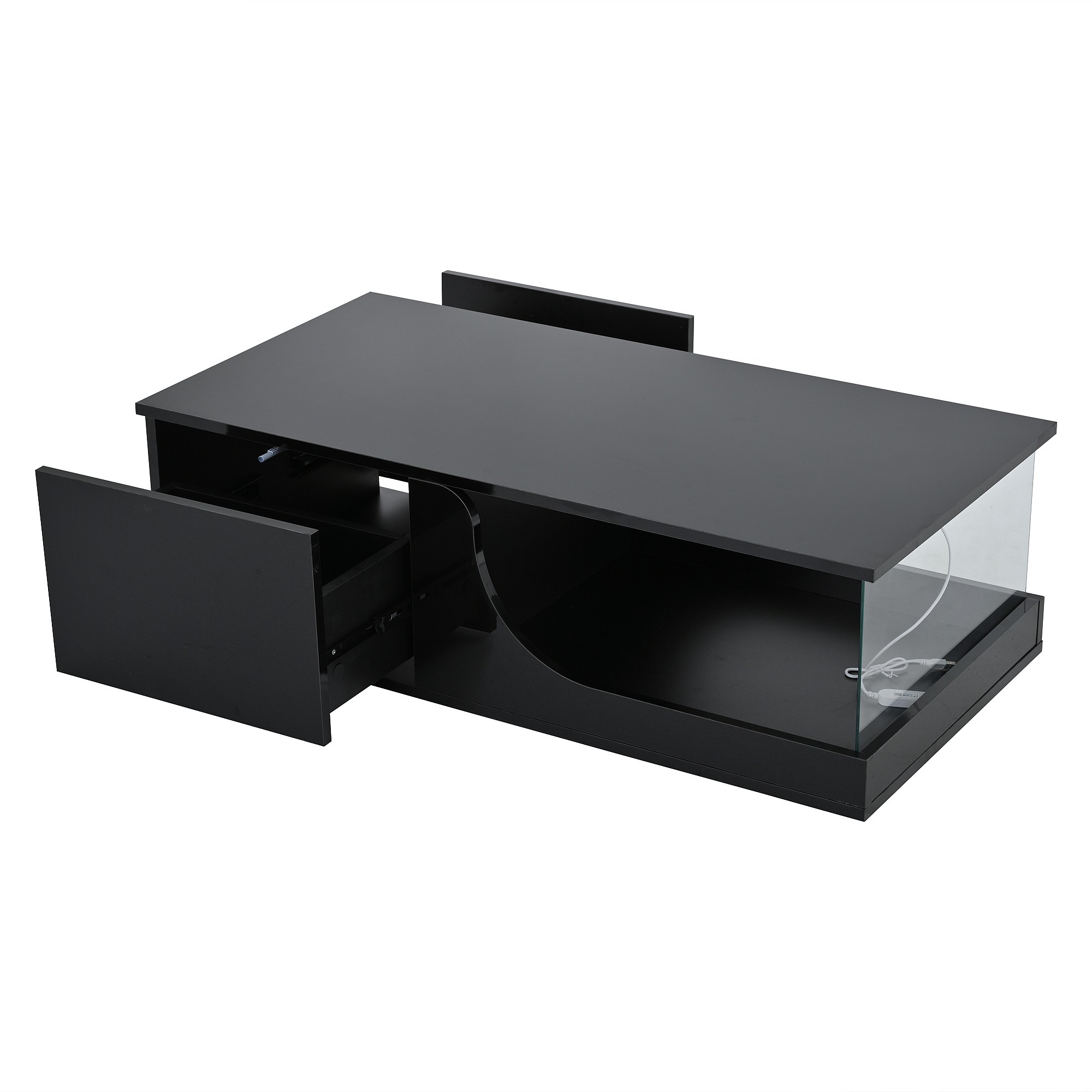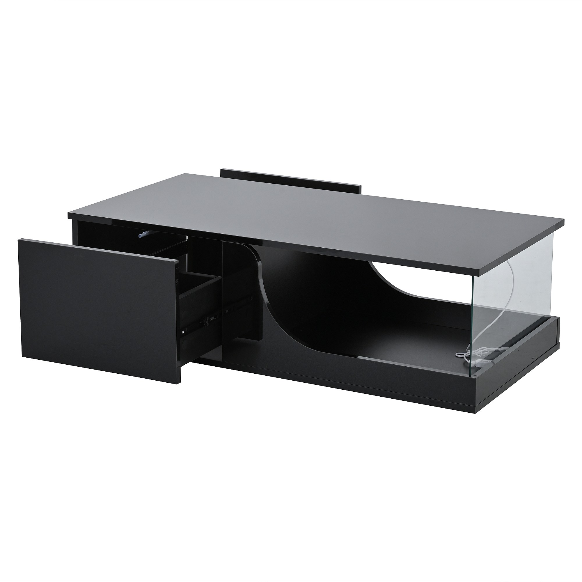 Tavolino da caffè nero con 1 cassetto portaoggetti, ripiano aperto e illuminazione LED - per soggiorno
