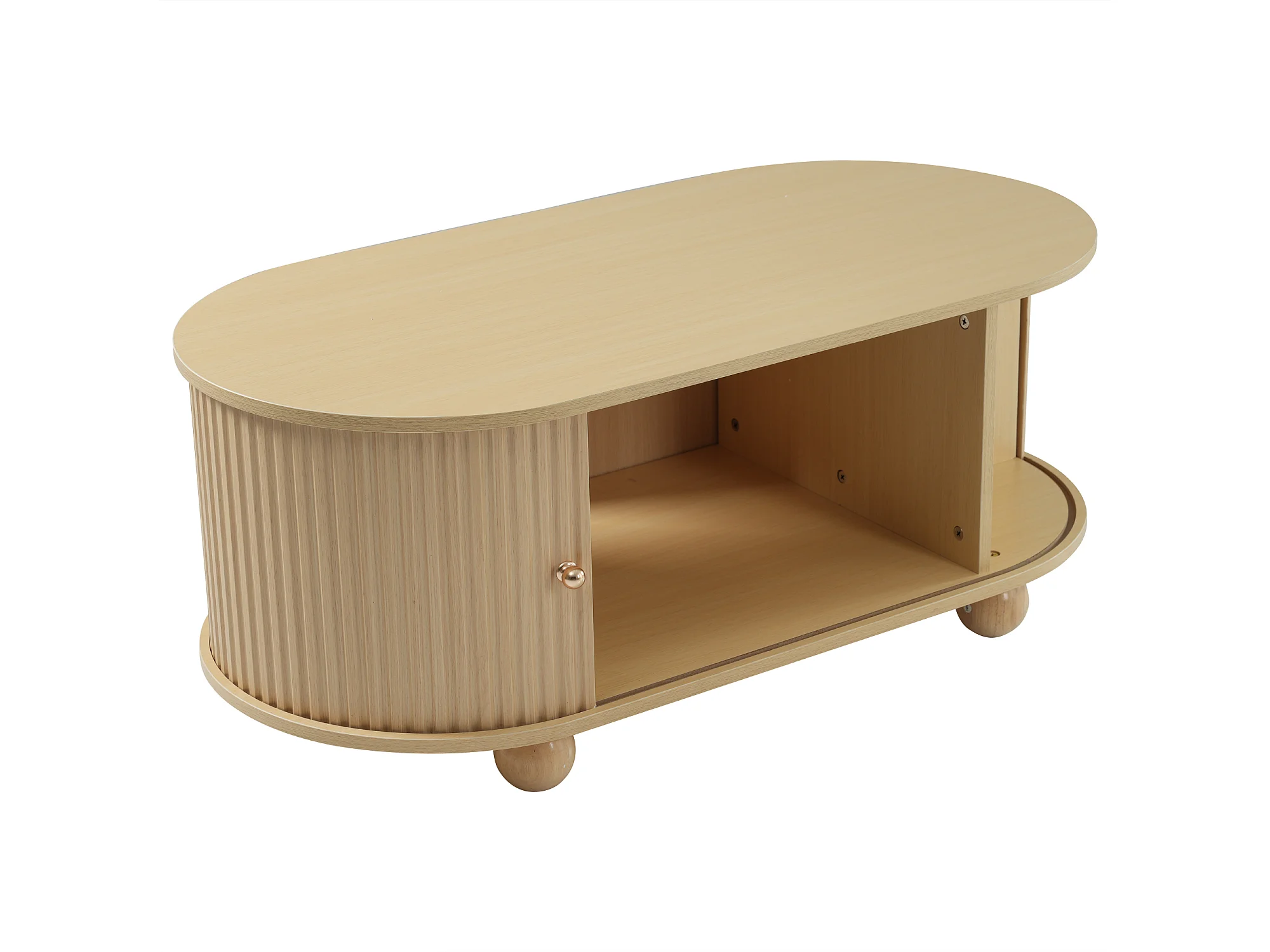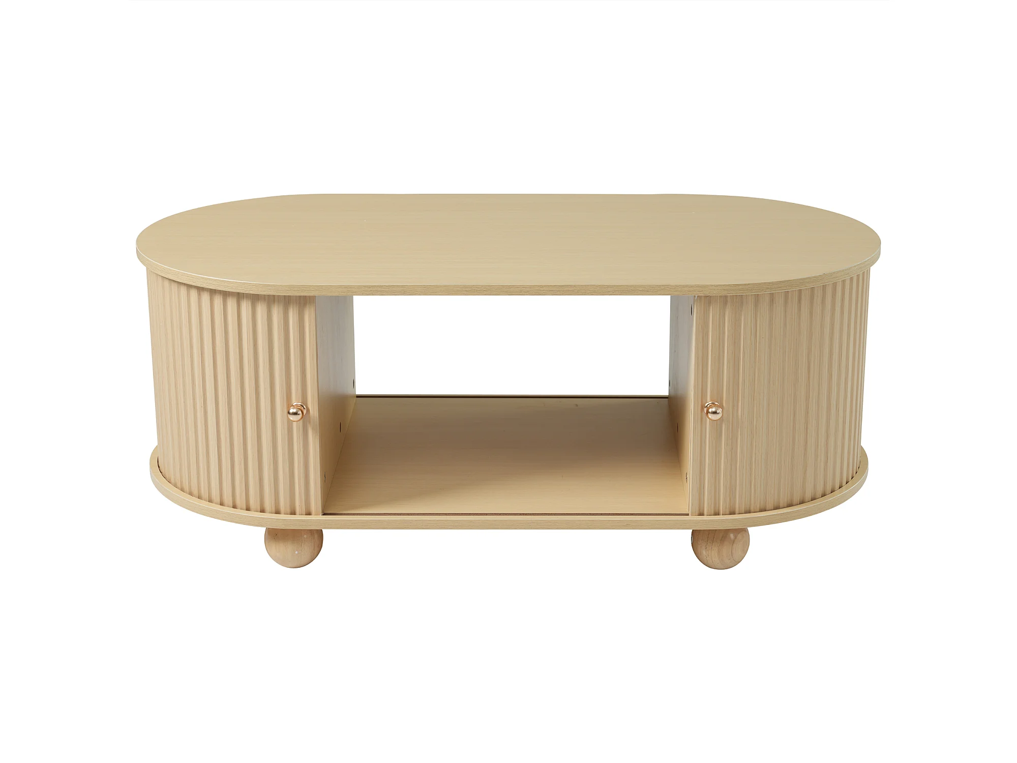 Tavolino ovale con contenitore e ante scorrevoli - Colore legno
