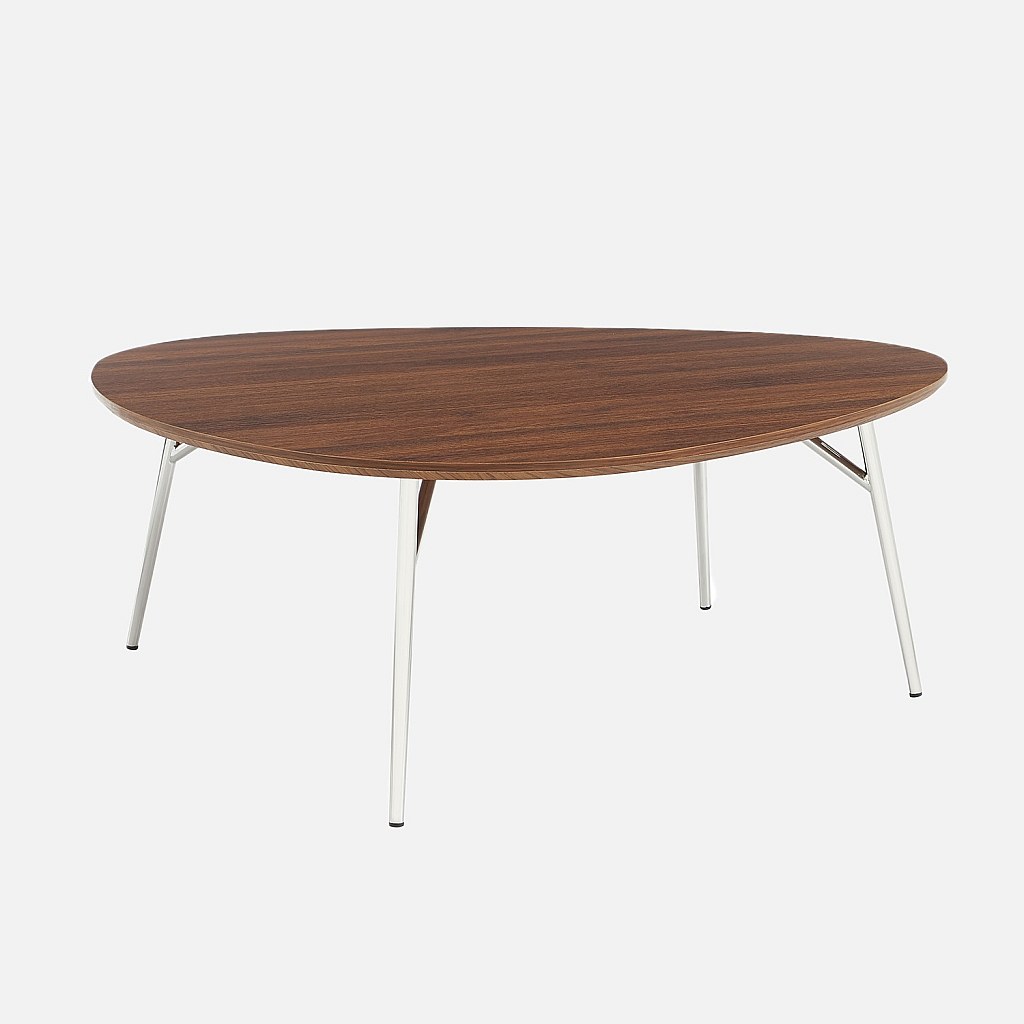Tavolino ovale con gambe cromate e effetto legno, marrone