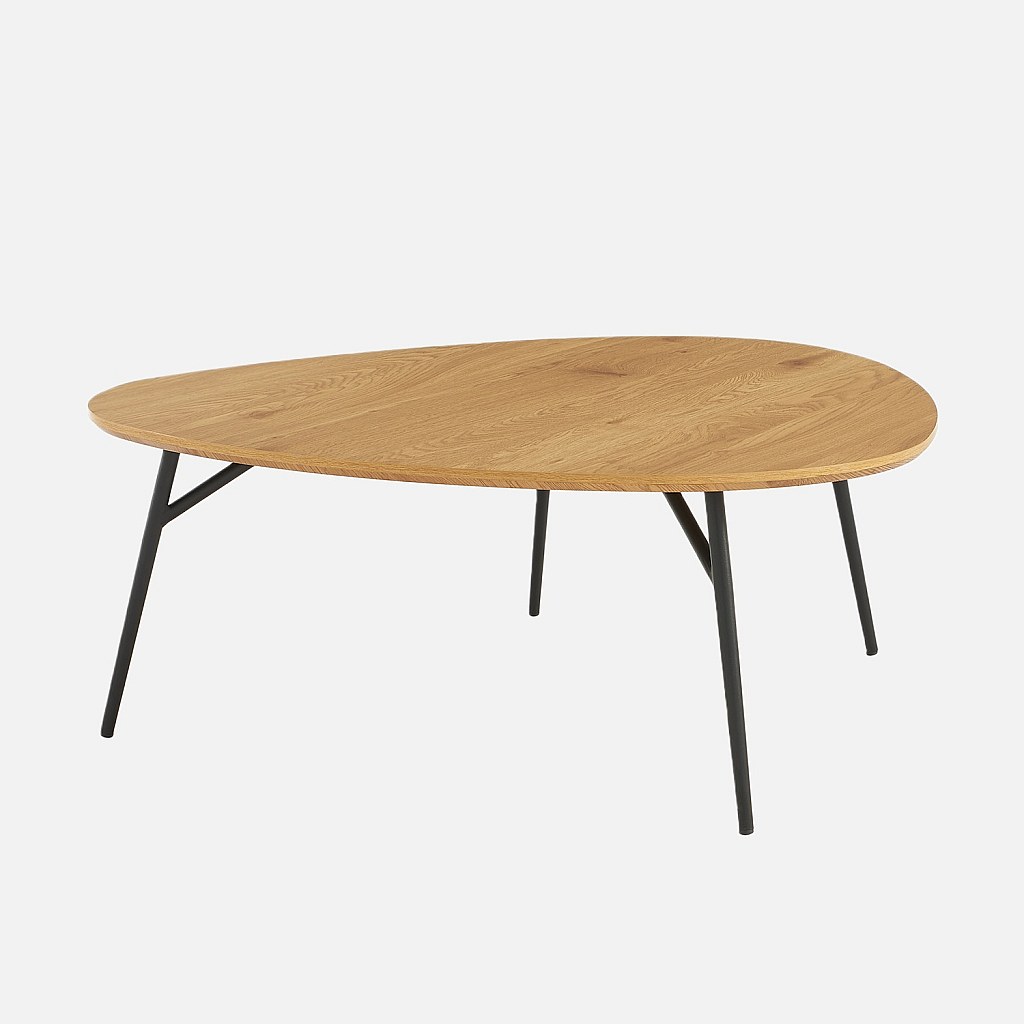 Tavolino ovale con gambe in metallo nero e effetto rovere, quercia